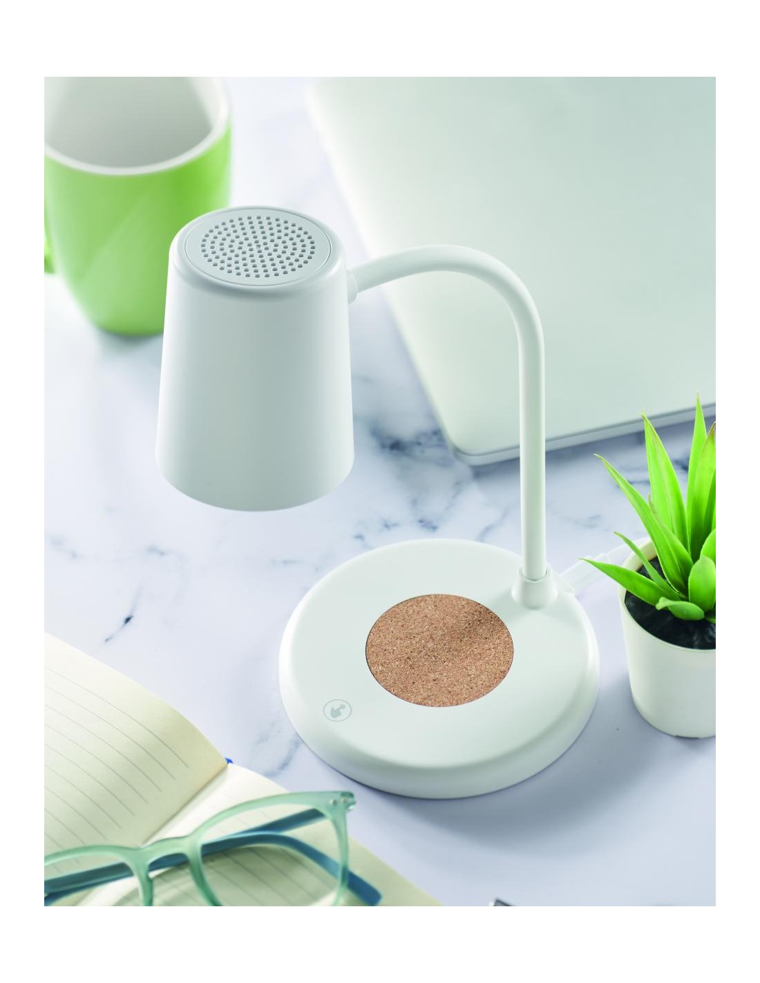 Lámpara de oficina de carga inalámbrica de 15W con altavoz inalámbrico 5.1. Tiene intensidad de luz ajustable con 3 tipos: luz diurna, luz fría y luz natural. Botón de encendido/apagado táctil. Salida: DC5V/1A (5W). Compatible con los últimos androids, iPhone® 8, X y mas recientes.
