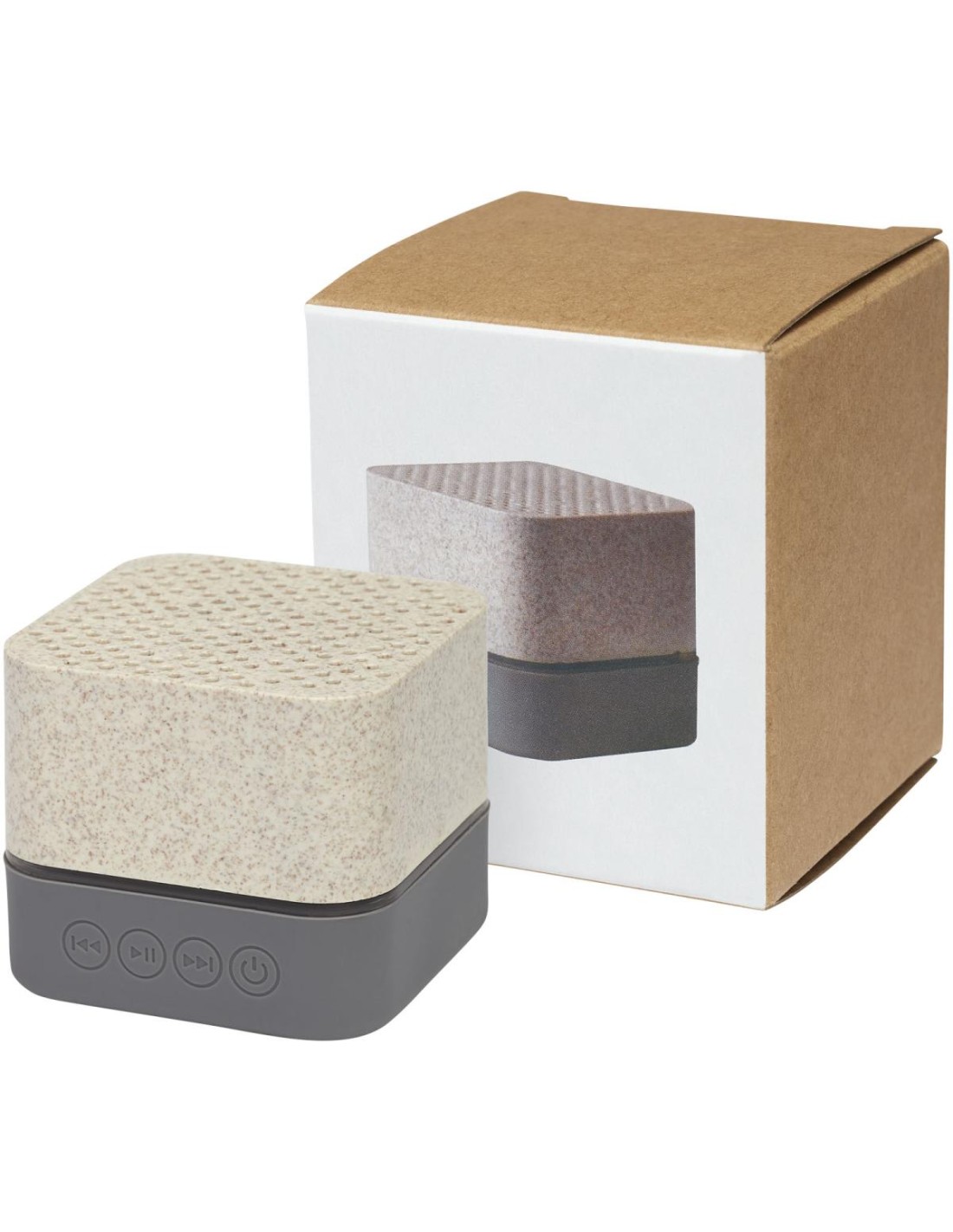 Altavoz Bluetooth® 5.0 de paja de trigo fabricado con un 51 % de paja de trigo y un 49 % de polipropileno. Cuenta con una batería de iones de litio recargable de 350 mAh incorporada que ofrece hasta 1,5 horas de tiempo de reproducción a volumen máximo. El altavoz con Bluetooth® , con una salida de altavoz de 3 vatios y controles de música/micrófono incorporados, es el altavoz de sobremesa perfecto. El manual de instrucciones y la caja de regalo están hechos de papel reciclado con certificado FSC. Se entrega con un cable de carga micro USB.