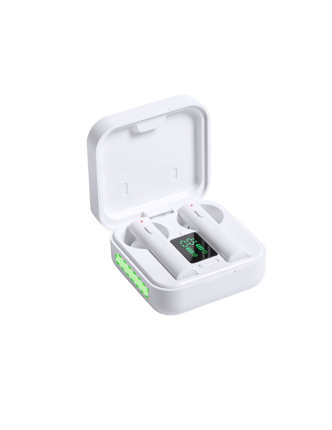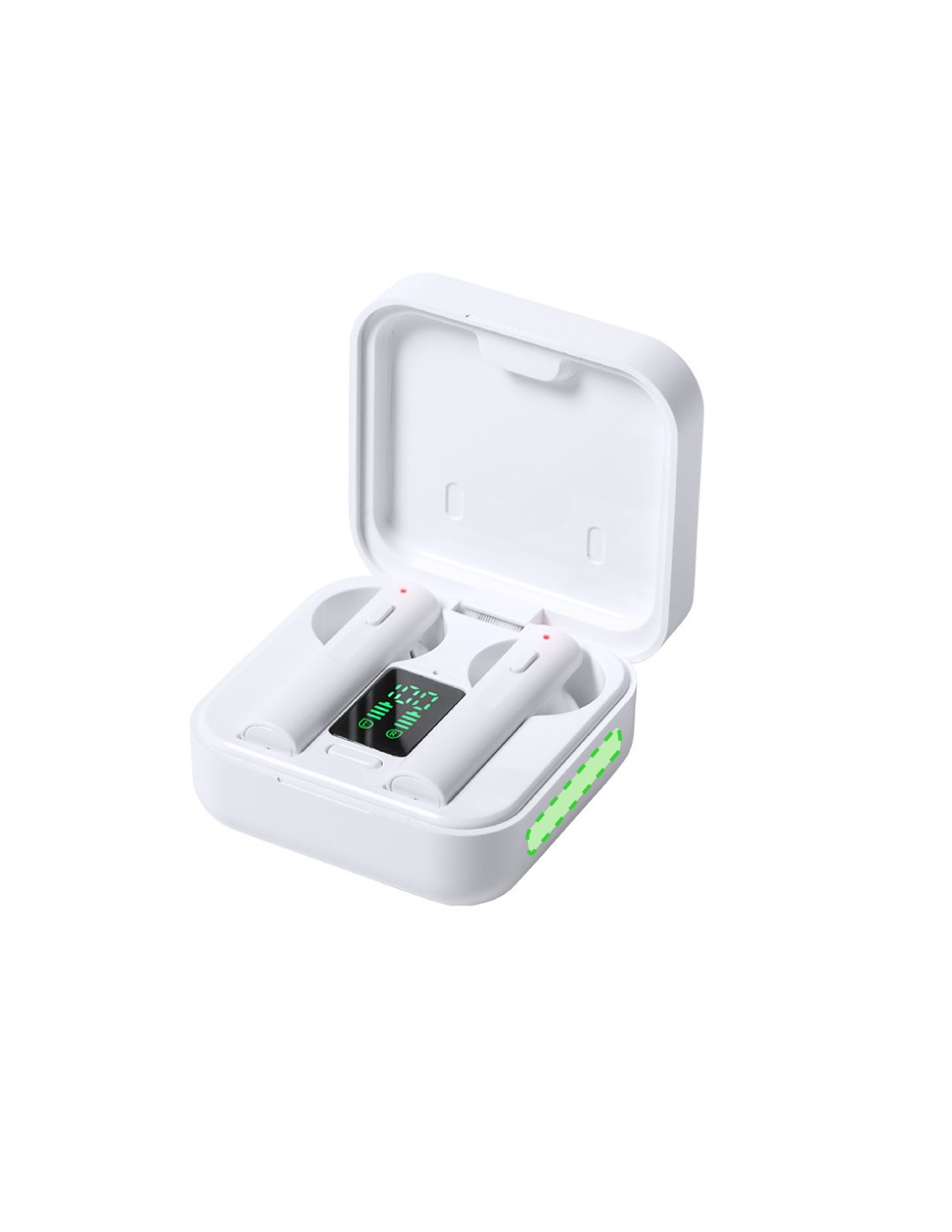 Auriculares intraurales en elegante acabado blanco y conexión Bluetooth 5.0. Con panel de carga solar integrado en la tapa y pantalla LCD interior...