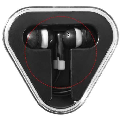 Los auriculares Rebel son unos sencillos auriculares que facilitan la escucha de música en cualquier lugar y en todas partes. Se pueden utilizar con cualquier dispositivo de audio estándar con una toma de audio de 3,5 mm. Los auriculares están fabricados en plástico ABS resistente y se presentan en un estuche triangular de plástico con compartimento para el cable, que los protege bien de cualquier daño externo. Los auriculares Rebel están disponibles en diferentes combinaciones de colores y ofrecen varias opciones de impresión de logotipos.
