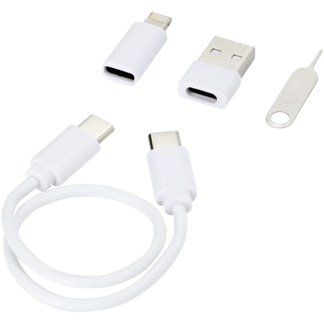 El cable modular de carga y transferencia de datos fabricado con plástico reciclado se entrega en un elegante estuche que también sirve de soporte para el teléfono. El cable ofrece múltiples soluciones de carga: Entrada USB tipo C y A, y salida USB tipo C/iOS/micro. Gracias a todos estos adaptadores y conectores, este cable permite cargar la mayoría de smartphones, cámaras, baterías externas, auriculares, etc. El cable tiene una potencia de salida máxima de 2 A. Dispone de un pasador de expulsión que resulta muy útil para extraer la tarjeta SIM del teléfono. El estuche también tiene espacio para guardar una tarjeta de memoria micro SD, así como una tarjeta nano SIM, lo que lo convierte en el accesorio de viaje perfecto. Longitud del cable: 26 cm. Se entrega en un sobre de papel kraft 100 % reciclado.
