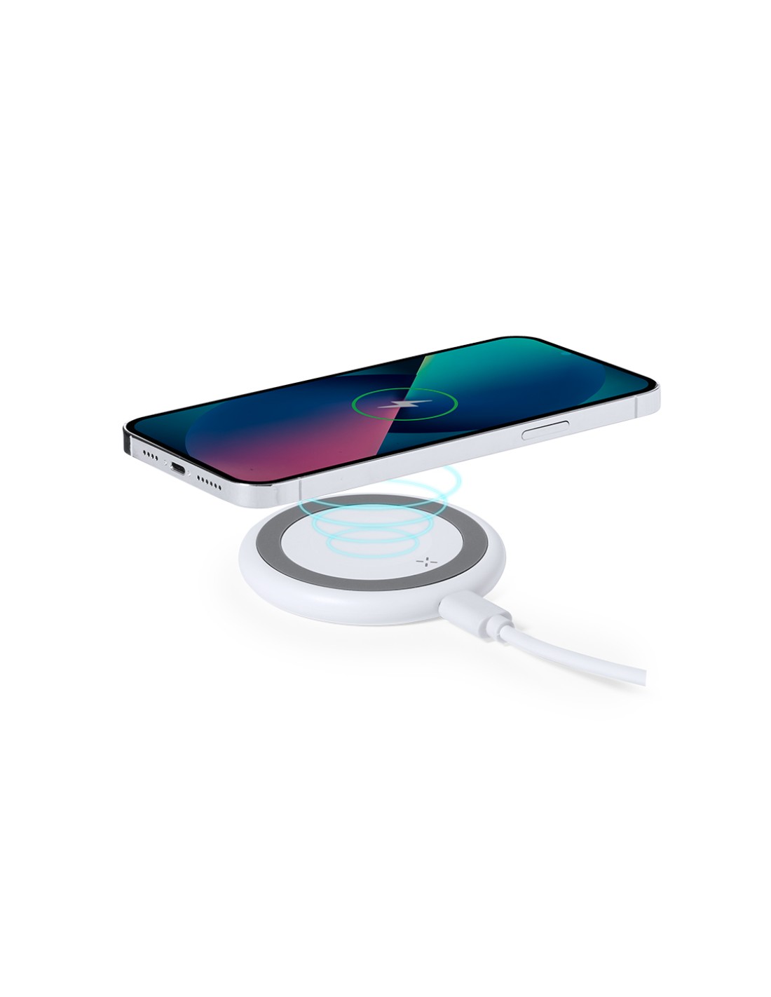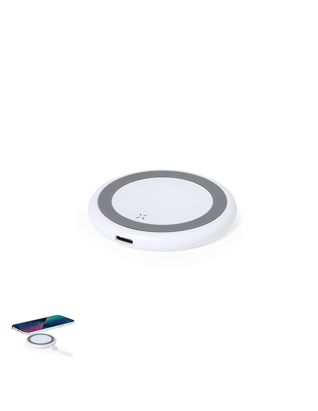 Cargador inalámbrico 15W de diseño circular. Base antideslizante y compatible con dispositivos equipados con tecnología de carga Qi. Diseñado para la...