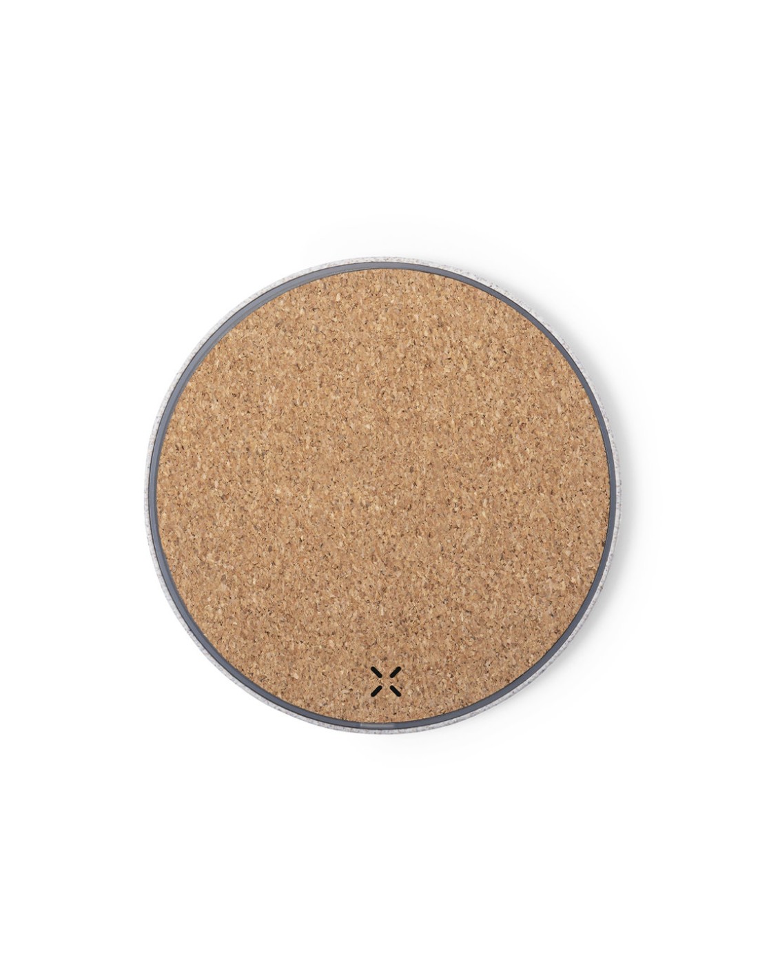 Cargador inalámbrico 10W de línea nature y diseño circular. Carcasa en combinación de materiales corcho natural y caña de trigo. Incluye cable micro...