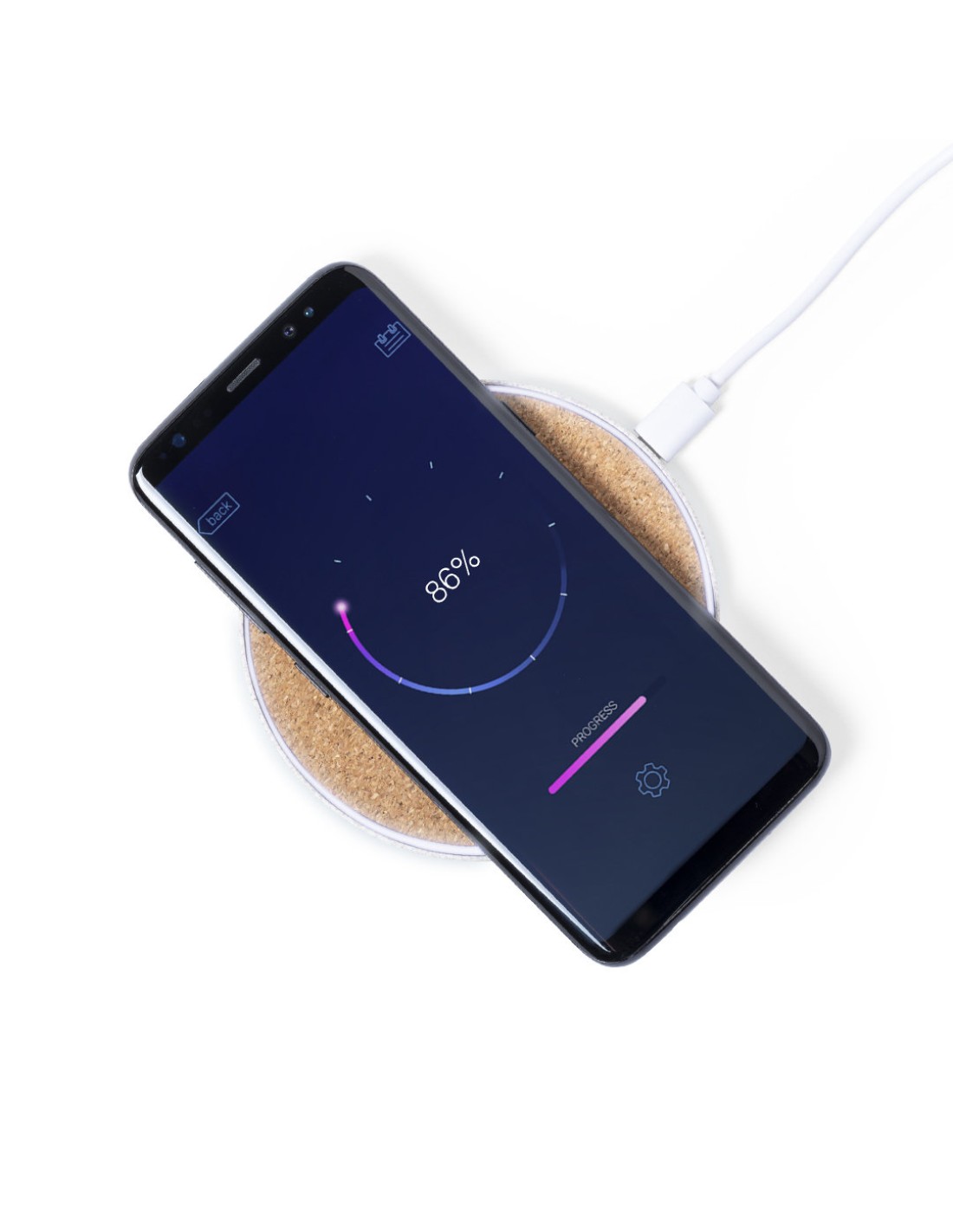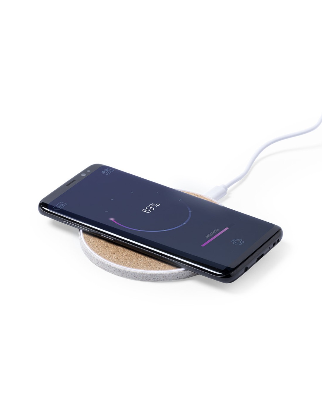 Cargador inalámbrico 10W de línea nature y diseño circular. Carcasa en combinación de materiales corcho natural y caña de trigo. Incluye cable micro USB de 1 metro de largo, con indicador de estado de carga y compatible con dispositivos equipados con tecnología de carga inalámbrica. Amplia superficie de marcaje y presentado en atractiva caja de diseño eco.