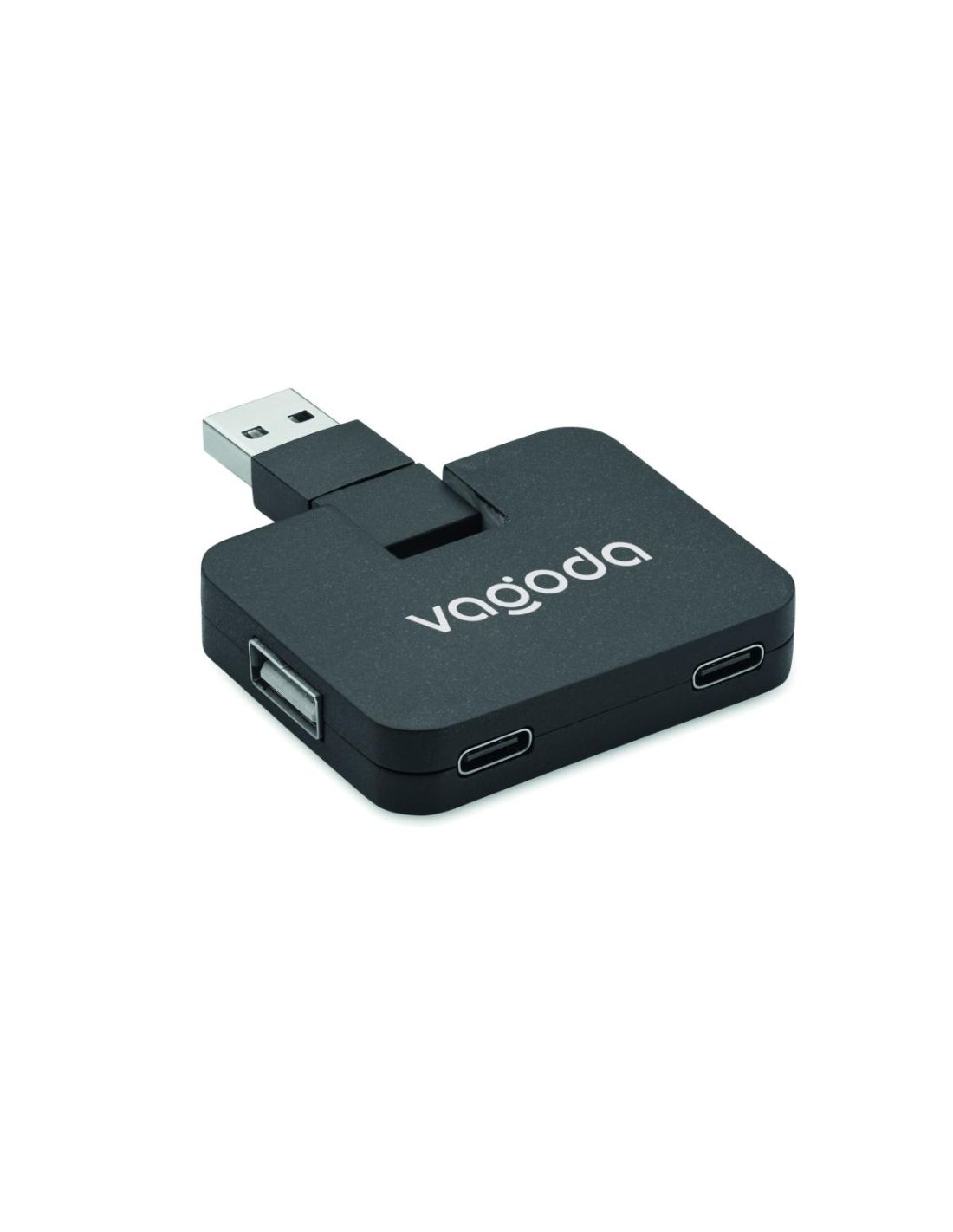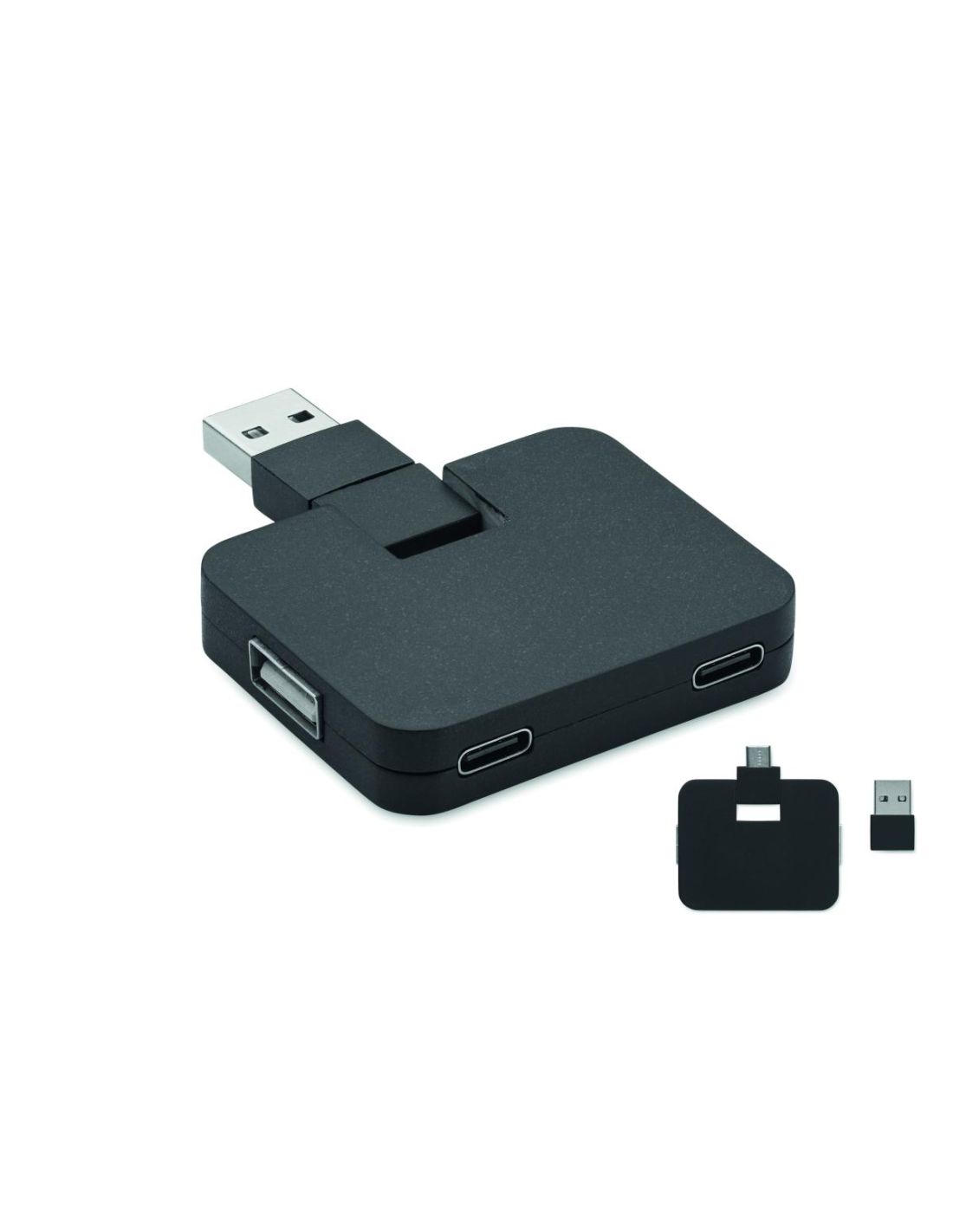 Hub 4 puertos USB 2.0 en ABS. Salida: 2 x Tipo-A y 2 x Tipo-C. Entrada: Tipo-C y Tipo-A.