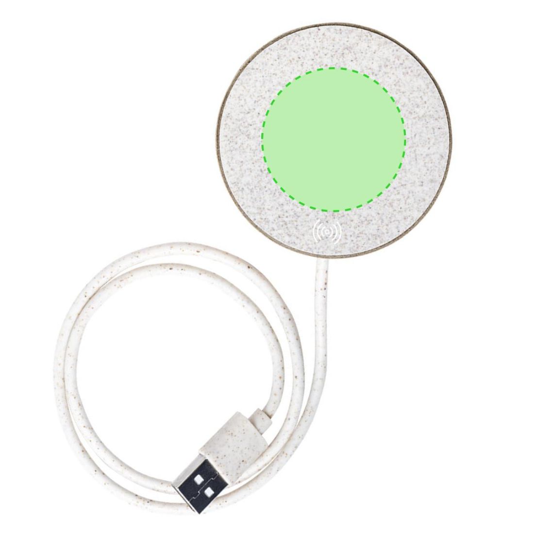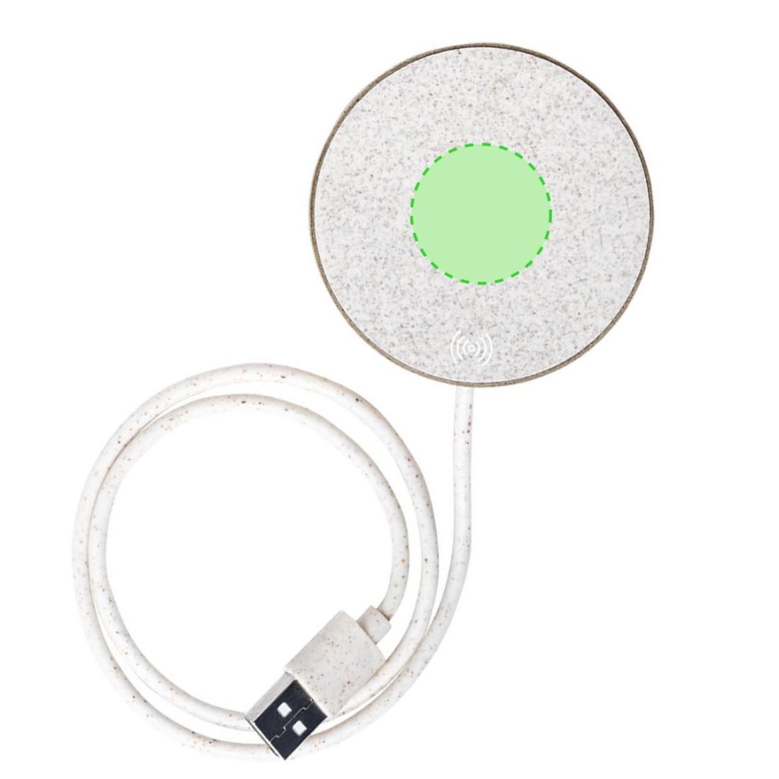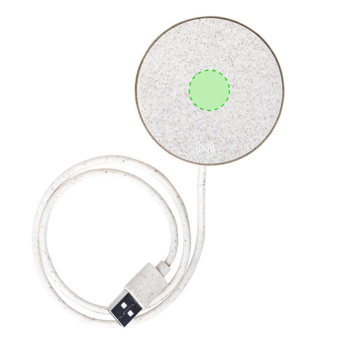 Original cargador inalámbrico circular de línea nature. Carcasa en cartón reciclado, contribuyendo a la conservación de los bosques y reduciendo considerablemente la huella de carbono, con superficie de carga y cable en caña de trigo. Compartimento interior para guardar el cable y poder llevarlo a cualquier lado. Indicador LED de estado de carga, compatible con smartphones con tecnología de carga inalámbrica y presentado en atractiva caja de diseño eco, con manual de instrucciones en español e inglés.