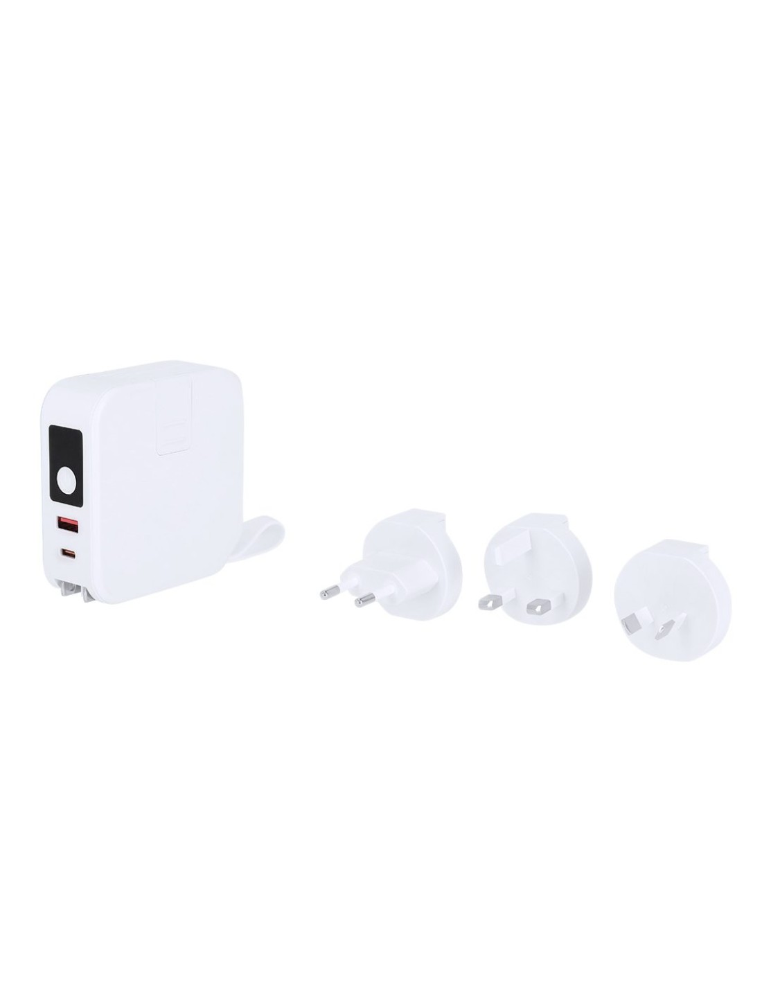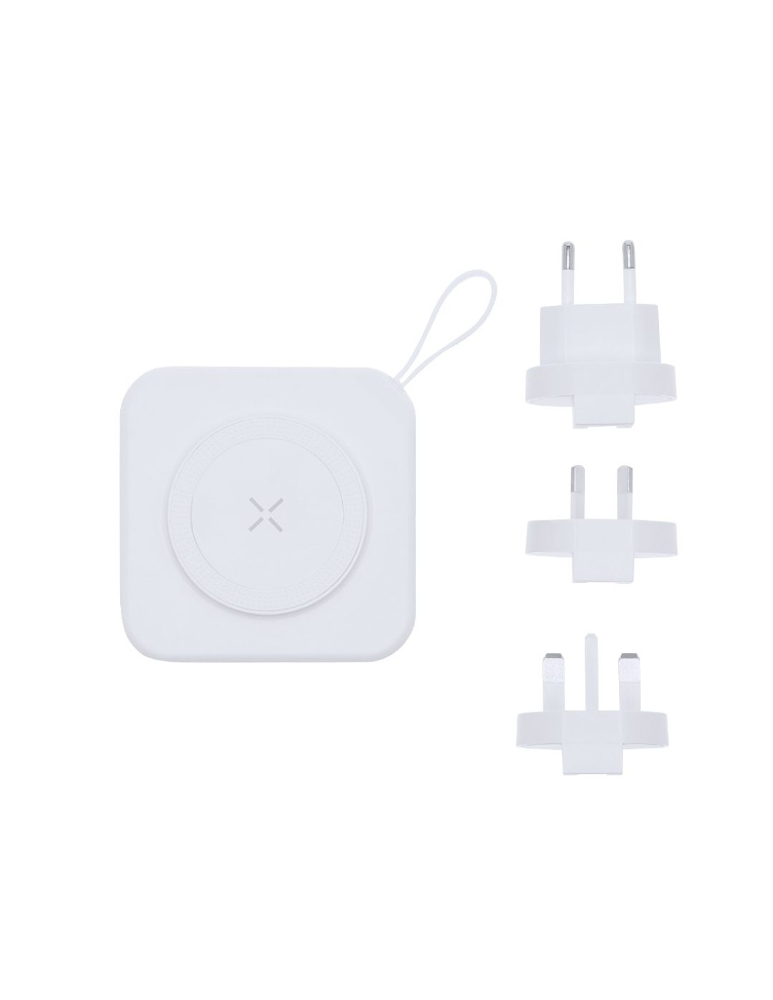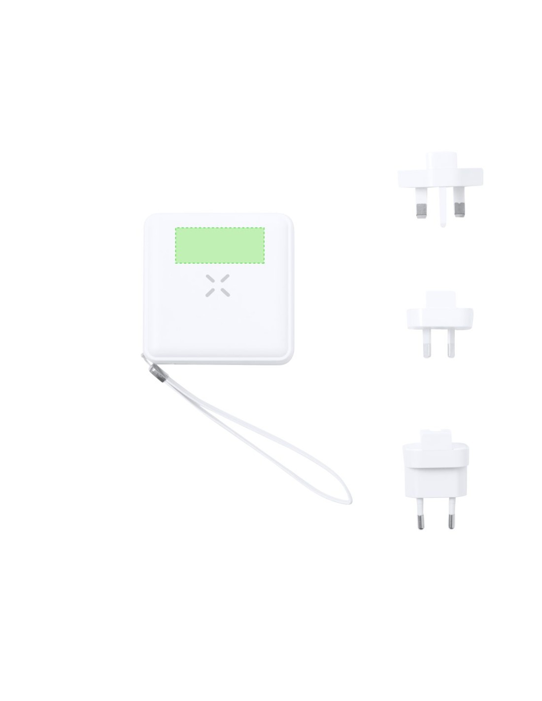 Adaptador viaje inalámbrico, multifunción y multisalida con powerbank integrado de 10.000 mAh de capacidad de carga. De elegante diseño en color blanco y amplia superficie de marcaje. Función de carga inalámbrica con tecnología magsafe, conexión dual de entrada y salida de corriente Tipo C y salidas USB. Con dos cables de salida integrados con conectores Tipo C y 2 en 1 (Micro USB y Lightning). Simultaneidad de uso para todas las funciones, con adaptadores de enchufe de pared para USA, Europa, Asia, Reino Unido y Australia. Presentado en atractiva caja de diseño kraft. Disponible manual de instrucciones en español e inglés.Las capacidades mostradas en todas nuestras baterías auxiliares externas son reales, incorporando todas ellas baterías de grado A y no recicladas, con una vida útil de al menos 500 ciclos de carga y según normativa CE.Además, están fabricadas conforme a los estándares RoHS y en cumplimiento con los siguientes requisitos de seguridad:Sistema de protección contra sobrecarga del power bank.Sistema de protección contra descarga completa que proporciona una mayor durabilidad del power bank.Sistema de bloqueo para evitar cortocircuitos.Sistema de transferencia de carga constante, acorde con la capacidad del dispositivo de destino.