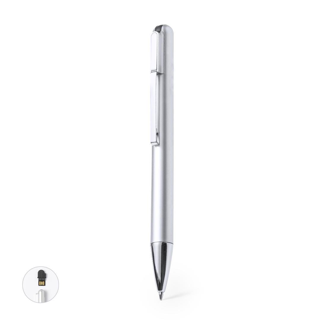 Bolígrafo USB fabricado en resistente ABS de acabado metalizado brillante. Con memoria USB de 16GB de capacidad integrada en la parte superior y clip...