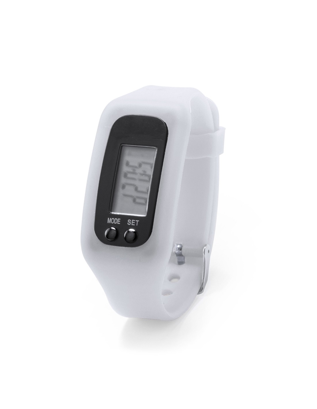 Desenfadado reloj digital de corte deportivo con pantalla LCD rectangular, correa ajustable de silicona y resistente a las salpicaduras de agua. Indicado para todo tipo de actividades deportivas y de ocio. Con pila de botón incluida y presentado en atractiva caja de diseño.