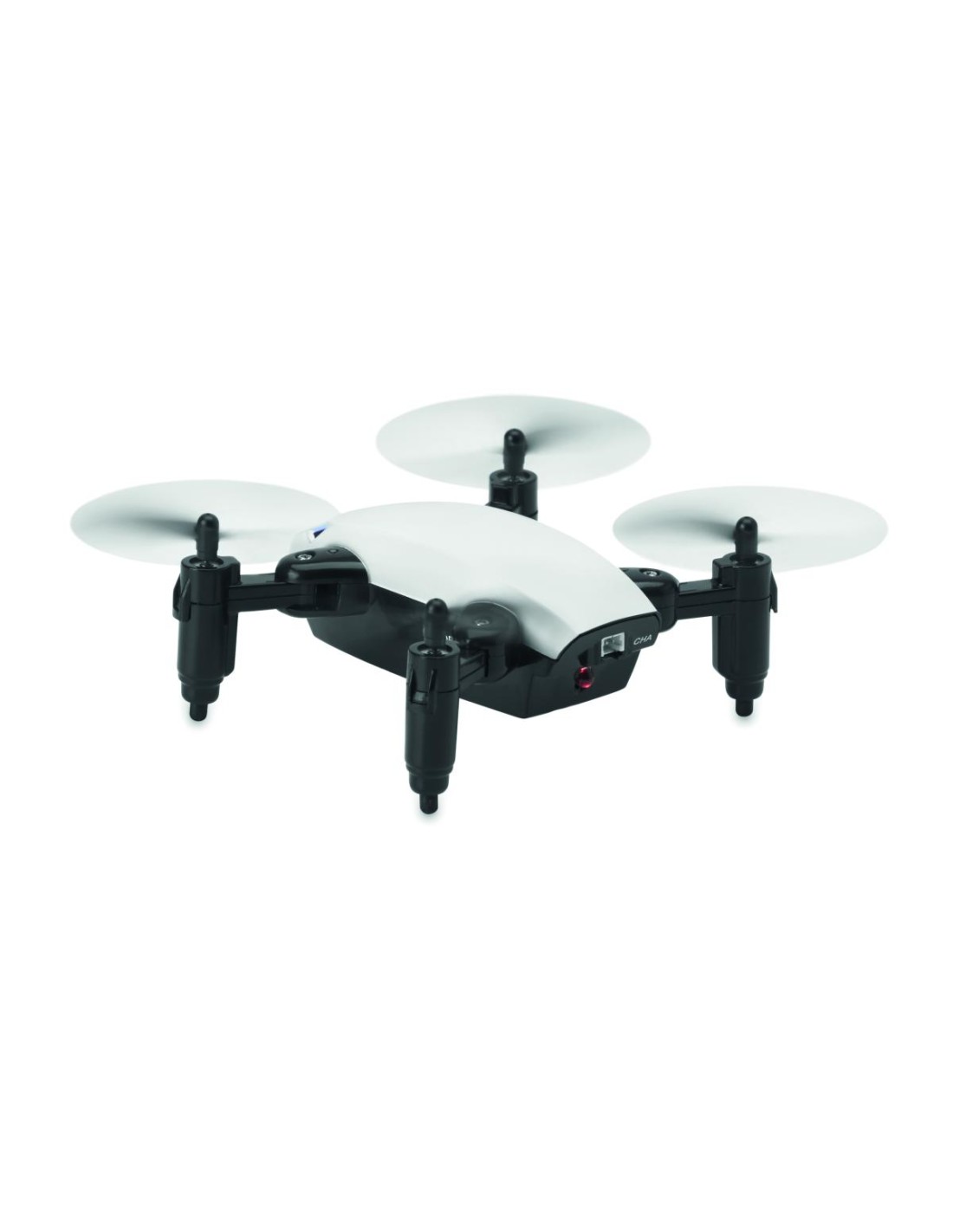 Dron plegable inalámbrico que incluye una cámara para tomar fotografías y vídeos. Se suministra con control remoto y es recargable. También se puede controlar el dron con un dispositivo móvil y la aplicación requerida. 2 pilas AAA para el mando no incluidas. Batería recargable Li-ion de 300 mAh.