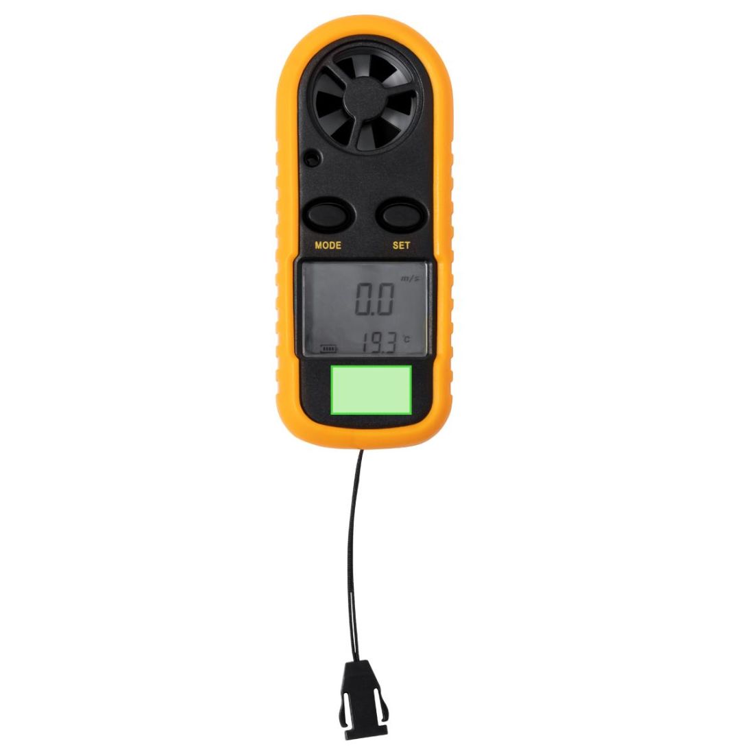 Anemómetro fabricado en resistente ABS. Con pantalla LCD retroiluminada de gran tamaño, que muestra la velocidad del viento, la temperatura y el nivel de batería. Incorpora funciones de medición de velocidad actual del aire, velocidad máxima y promedio. Disponibles multitud de unidades de medida, entre las que destacan la escala de intensidad de Beaufort y la velocidad del aire en distintos formatos (m/s; km/h; ft/min; nudos; mph). Además, muestra la temperatura ambiente en ºC/ºF, la temperatura atmosférica y la sensación térmica. Con función de apagado automático tras unos minutos de inactividad y memoria que permite acceder a los registros almacenados en mediciones anteriores, aunque se haya apagado el dispositivo con anterioridad. Alimentado por pila de botón (incluida) y presentado en caja individual de acabado kraft.