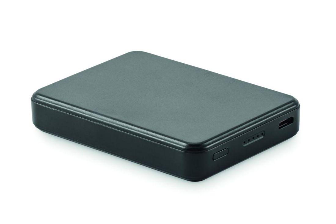Power bank de 5000 mAh fabricada en ABS reciclado. Output 5V CC/1 A y 5V CC/2 A. Incluye luz indicadora y cable USB con conector micro USB. Compatible con tecnología carga rápida (20W). Entrada/salida: tipo C compatible Power Delivery (PD) para portátiles más recientes.