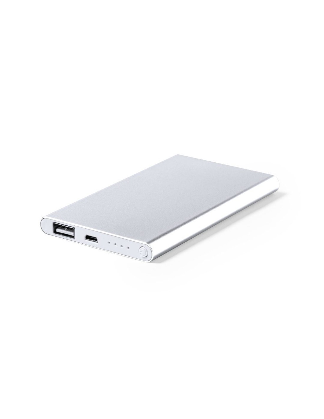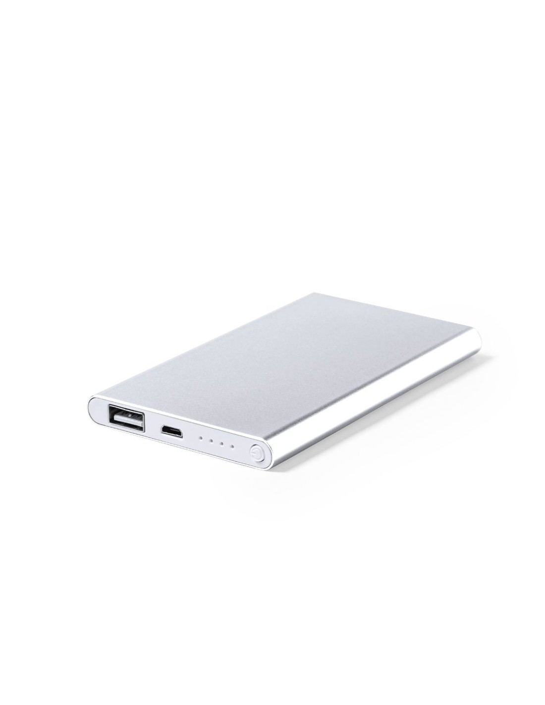 Batería auxiliar externa de 2.200 mAh, de diseño plano y fabricada en aluminio. Con salida USB y entrada Micro USB. Indicadores LED de estado de...