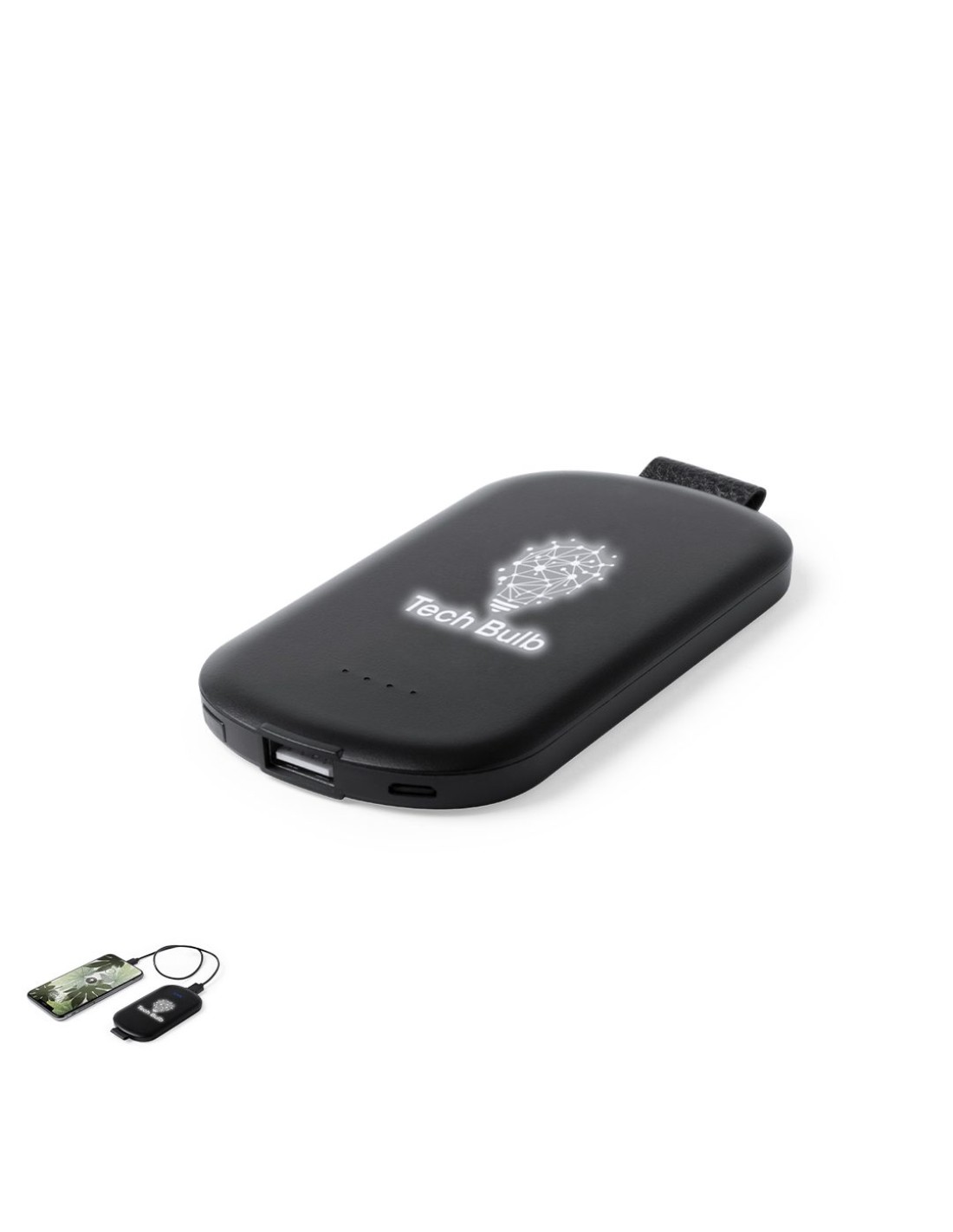 Batería auxiliar externa de 2.500 mAh de capacidad de carga. Con luz led interior y un recubrimiento exterior especialmente diseñado para marcaje en...