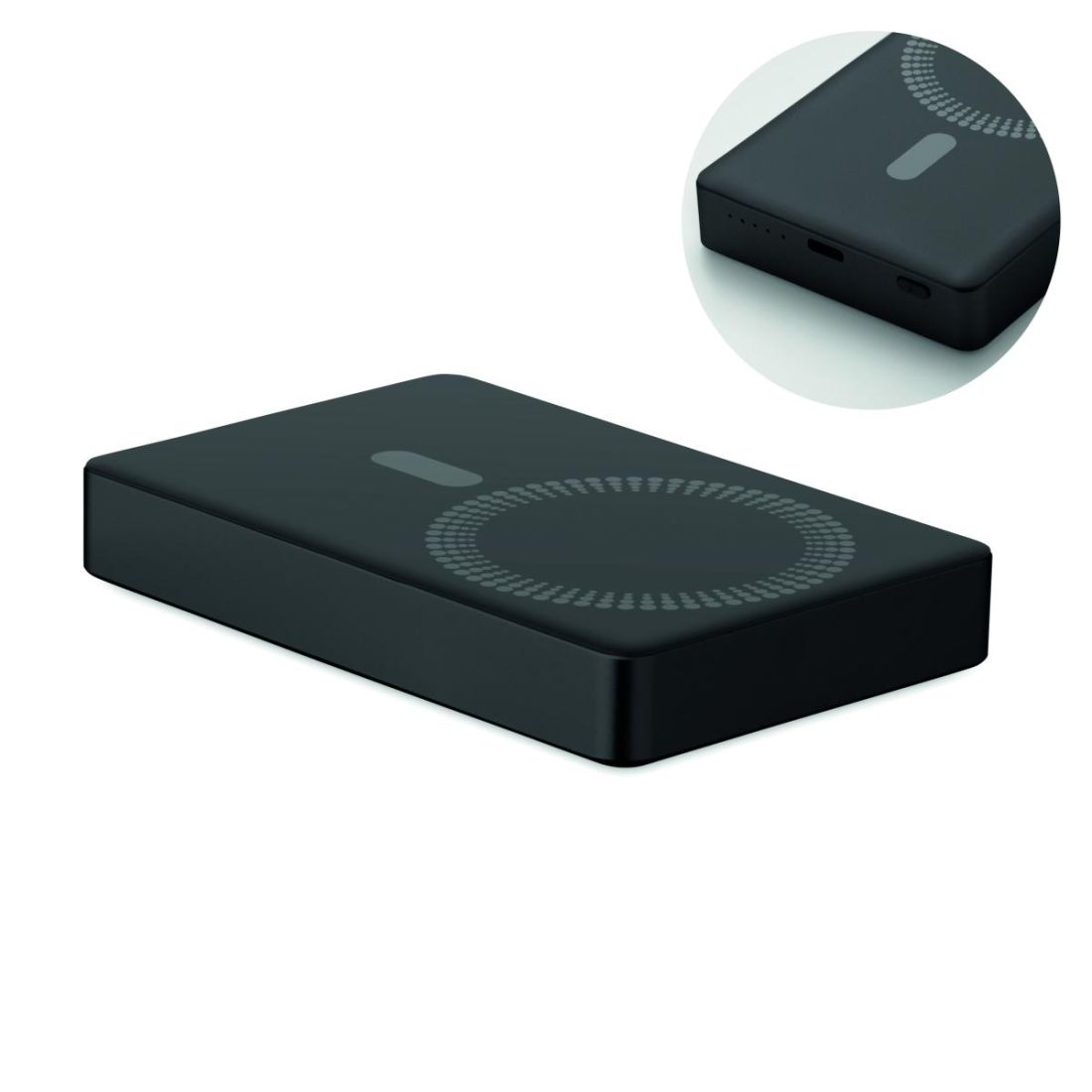 Powerbank magnético inalámbrico PD 20W. 10000 mAh. Aluminio reciclado y ABS (GRS). Salidas: USB-C hasta 20W. Carga inalámbrica hasta 15W. Entrada:…