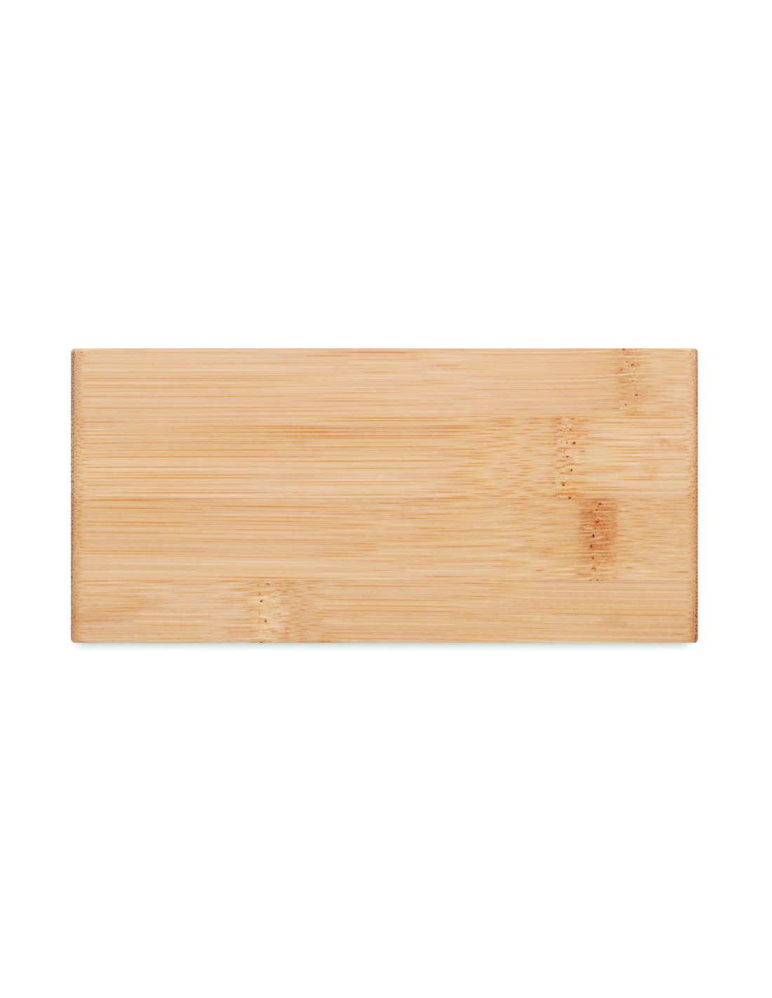 Cargador inalámbrico con carcasa de bambú. Incluye reloj despertador con pantalla LED azul y temperatura. Enchufe adaptador AC-DC. Output inalámbrico: DC5V/1A (5W). No apto en Reino Unido. El bambú es material natural, el color del articulo puede varia