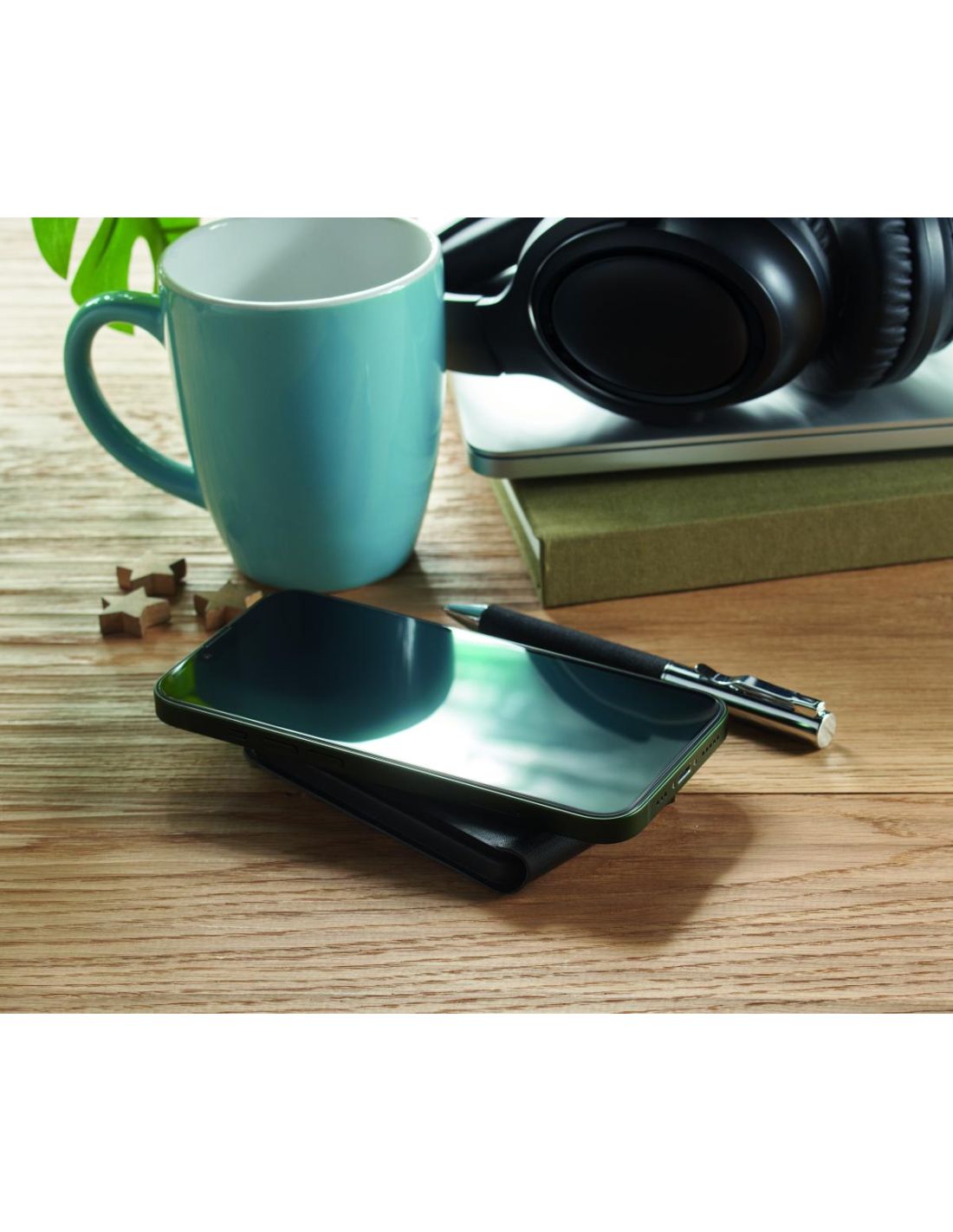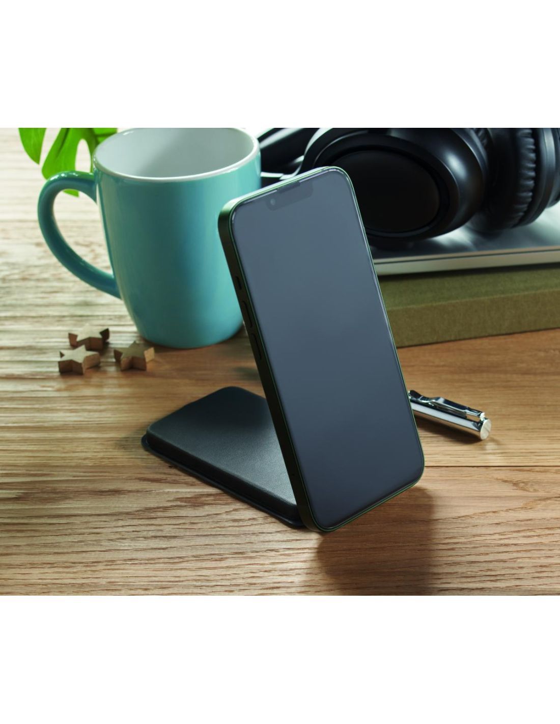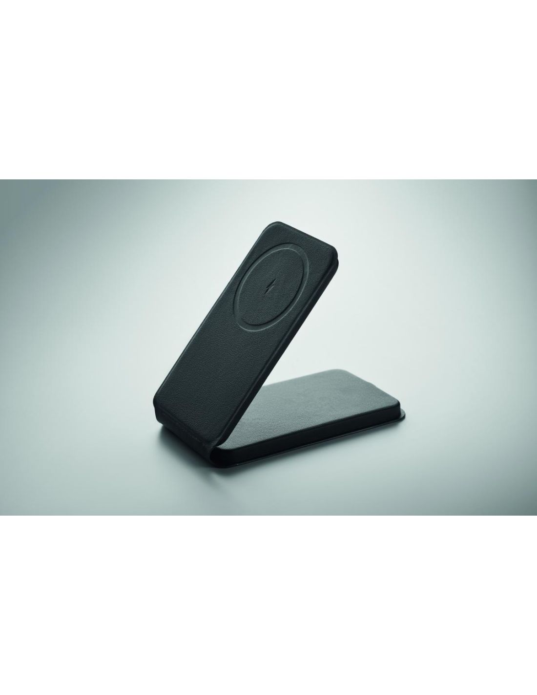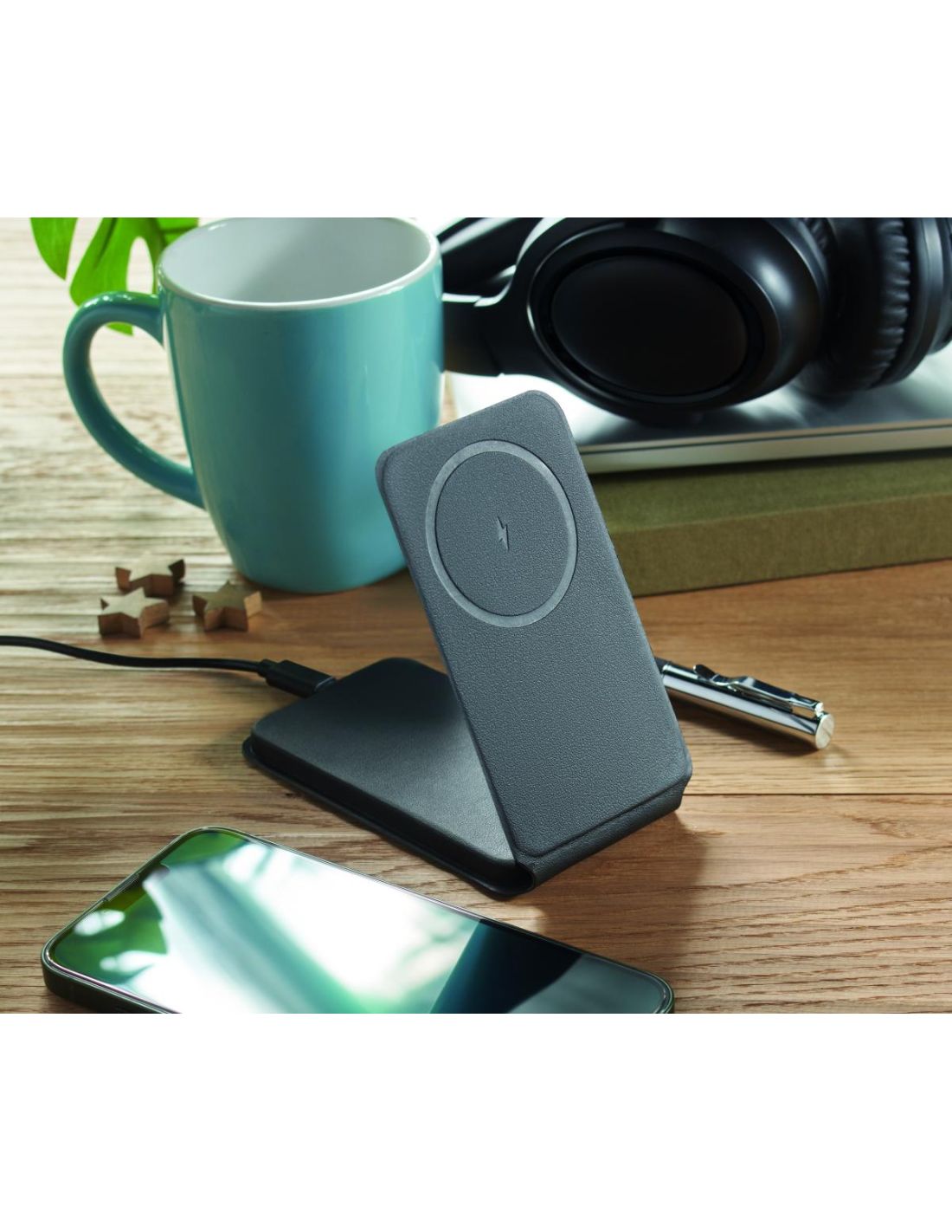 Cargador inalámbrico plegable de 15 W con soporte magnético para teléfono en poliéster reciclado con PU.