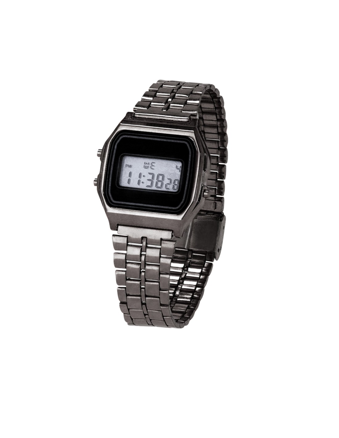 Reloj con sofisticado acabado metálico. Con pantalla con retroiluminación LED, que garantiza una lectura clara de la hora incluso en condiciones de poca luz. Ofrece una combinación de funciones prácticas, incluyendo hora, calendario, cronómetro y alarma, que permiten gestionar el tiempo de manera eficiente.Además, es resistente a salpicaduras, asegurando durabilidad y fiabilidad en el uso diario. Con tecnología moderna, elección ideal para quienes buscan un accesorio distintivo y funcional.
