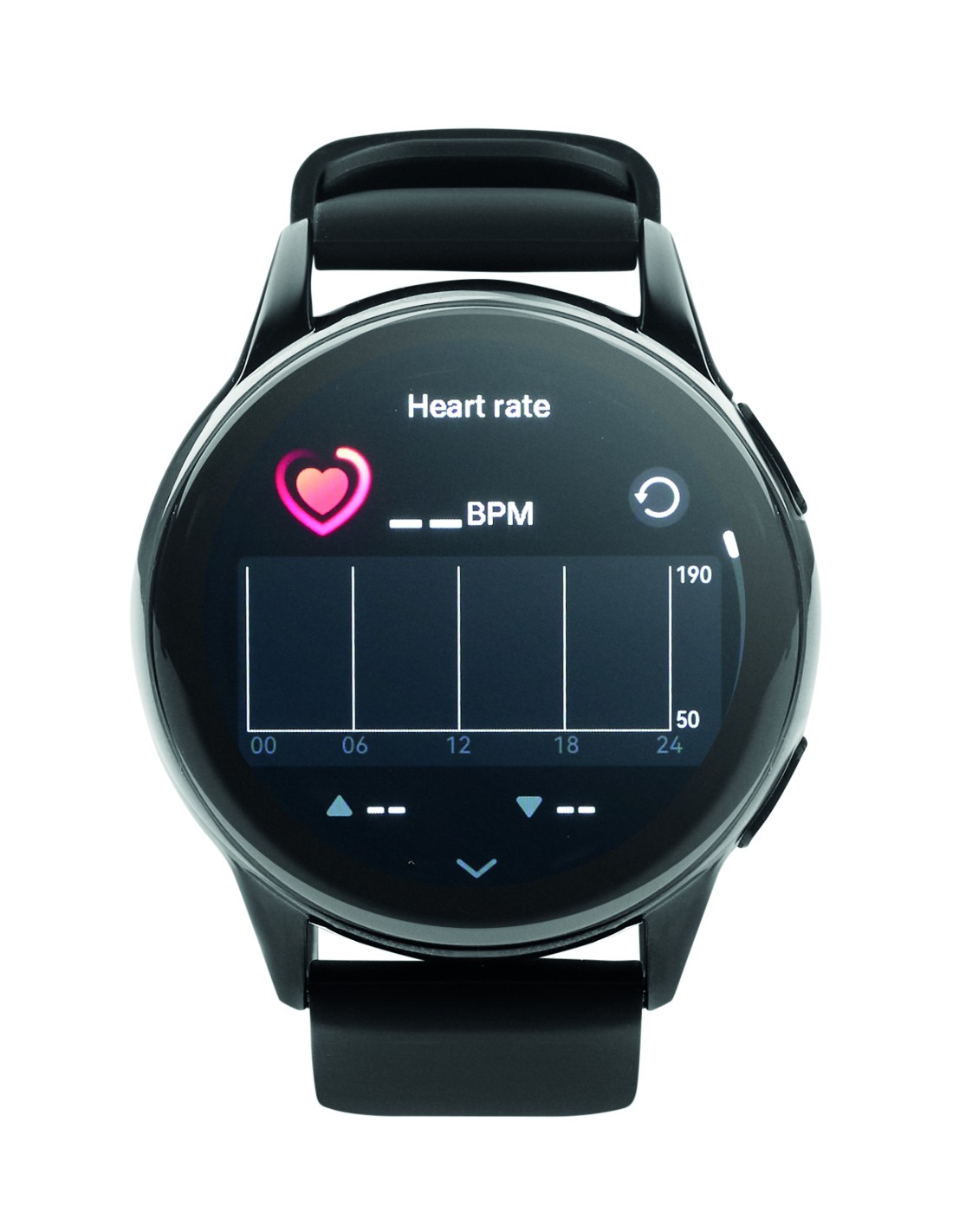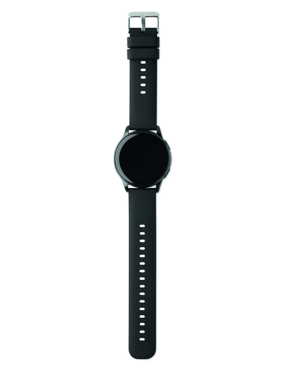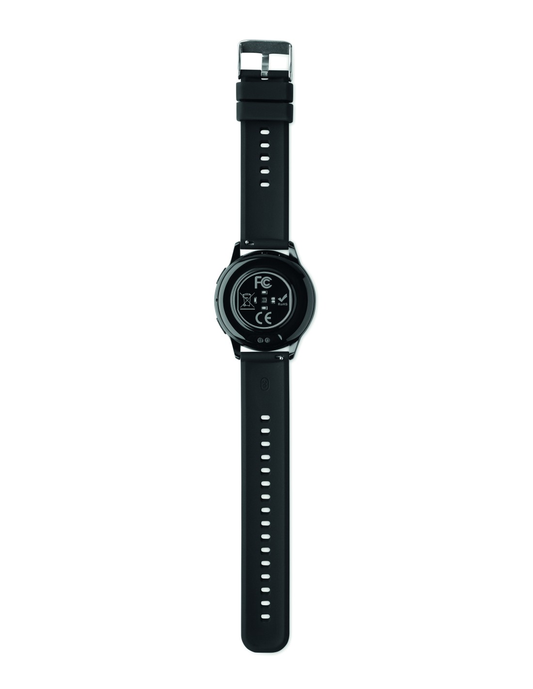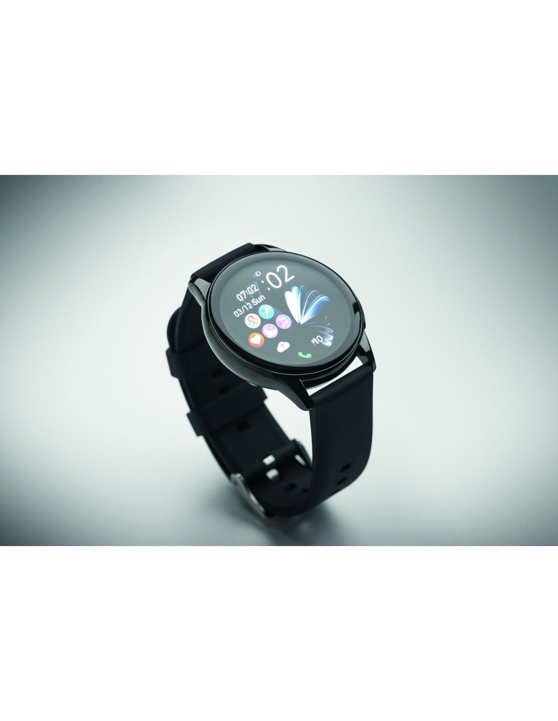 Smartwatch inalámbrico waterproof IP68 de aleación de zinc con correa de silicona. Pantalla táctil AMOLED de 1.32''. Batería recargable Li-Pol de 300 mAh. Funciona con una aplicación gratuita (FitCloudPro disponible en iOS y Android).
