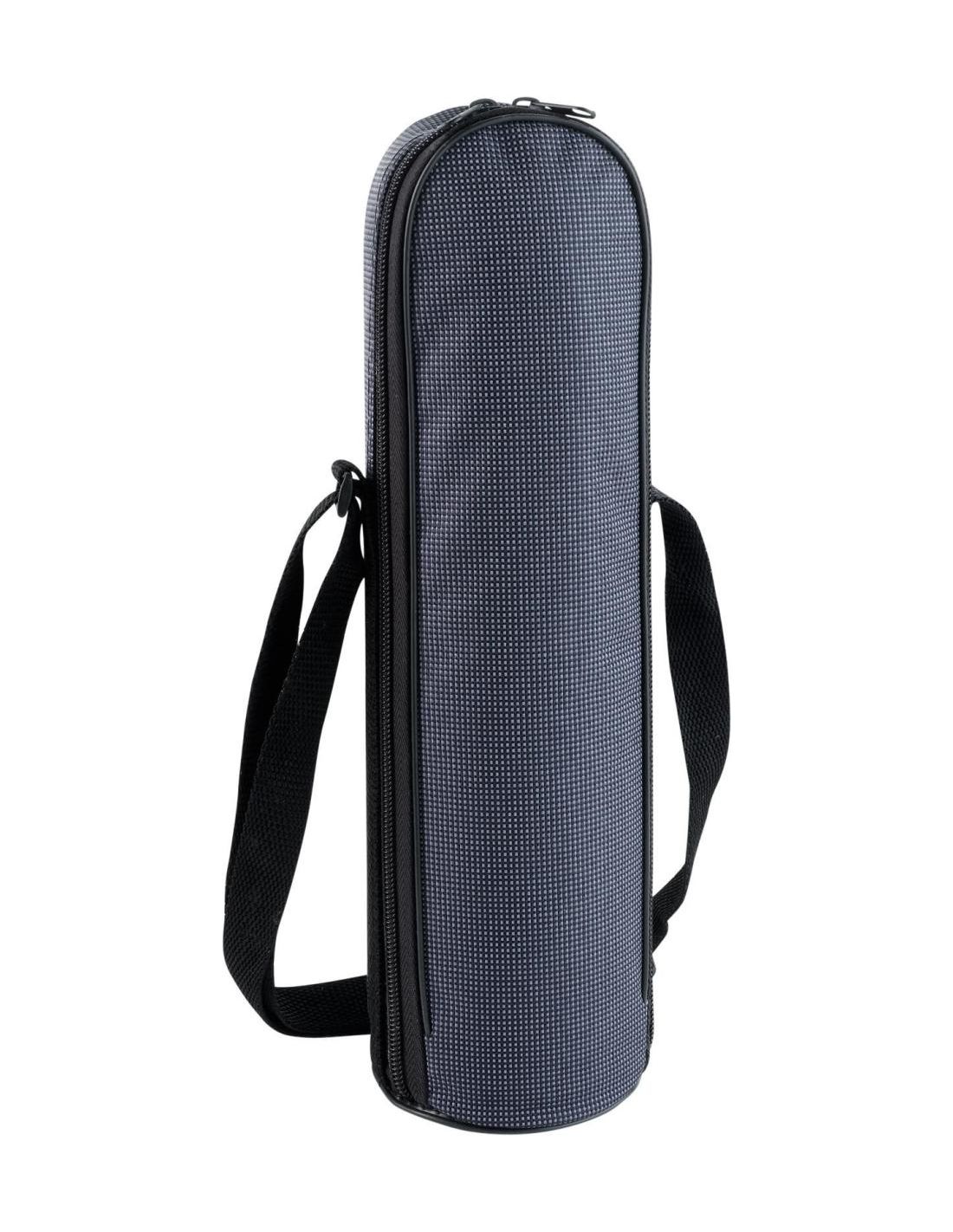 Termo con doble pared (750 ml) de acero inoxidable 304 con funda de poliéster 600D y bandolera. Evitar bebidas ácidas o con gas.