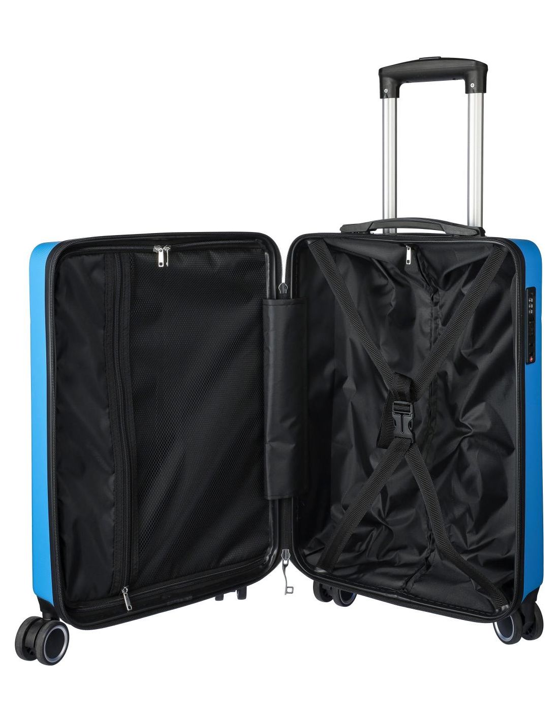 Trolley de ABS de 20 pulgadas con carcasa rígida, 8 ruedas giratorias (4x2) y un sistema de asa metálica de tres niveles. Incluye un asa superior de plástico, un candado de combinación y una placa de grabado láser con cinta 3M. El interior, forrado con material 210D, tiene tres compartimentos: un bolsillo con cremallera estilo U, un bolsillo de malla y una cincha estilo X con hebilla. Capacidad: 30L. Presentado en una caja de cartón marrón.