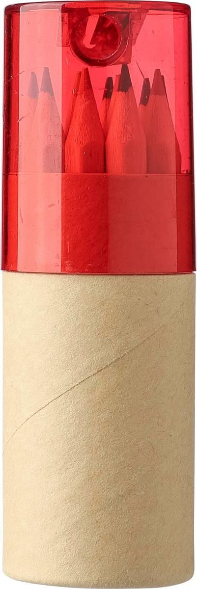 Tubo de cartón con 12 lápices de color y sacapuntas en la tapa de ABS.