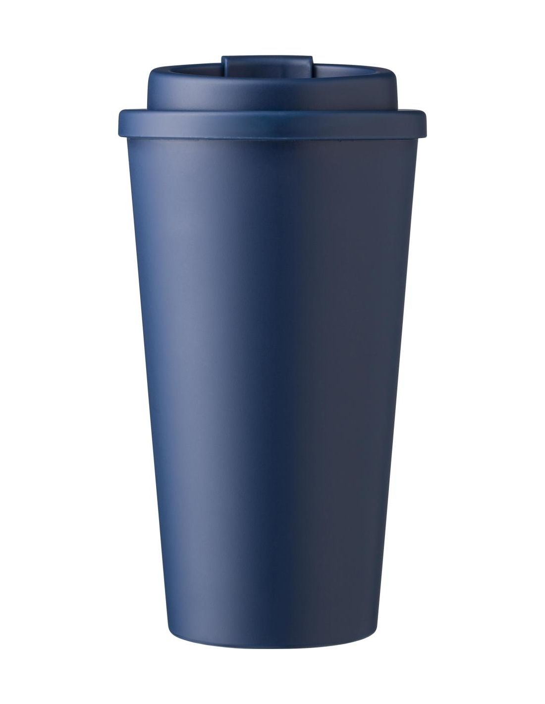 Vaso de PP (475 ml) con tapa de rosca y apertura para beber. Para bebidas frías y calientes.