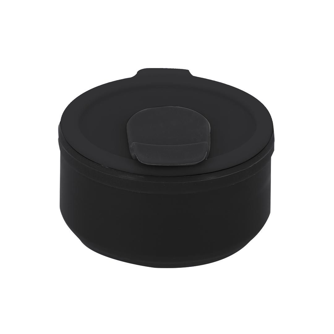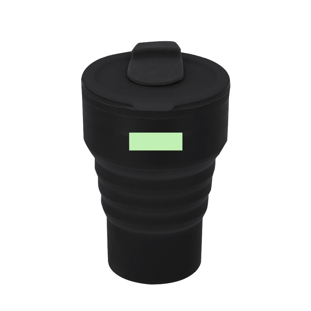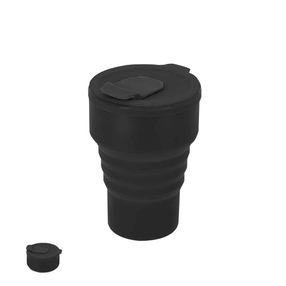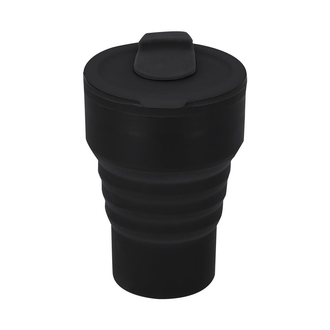 Vaso plegable de 350 ml de capacidad. Fabricado en silicona de alta calidad con tapón a juego. Tapa con boquilla deslizante. Con cuerpo flexible de acabado mate, este vaso puede ser plegado para un cómodo y sencillo almacenamiento. Libre de BPA.