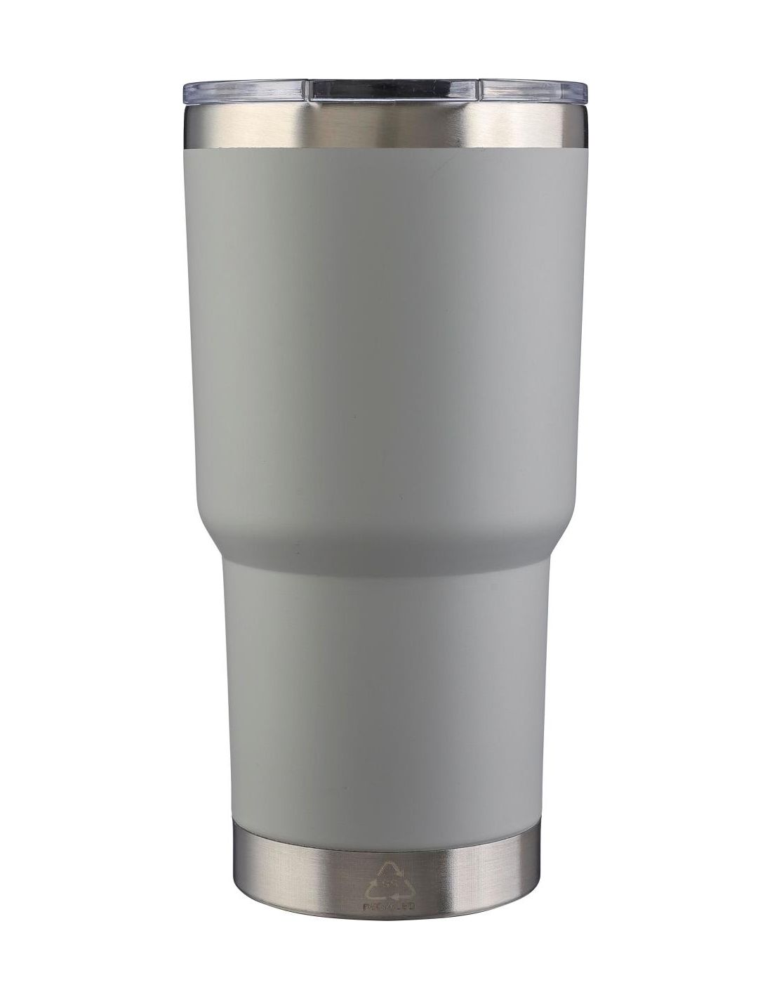 Vaso de acero inoxidable de doble pared (590 ml) con tapa de PS. Logotipo de reciclado grabado en la taza. Interior acero inoxidable 304 y exterior acero inoxidable 201. Presentado en una caja de cartón marrón.