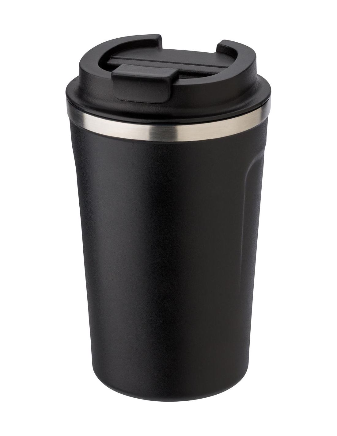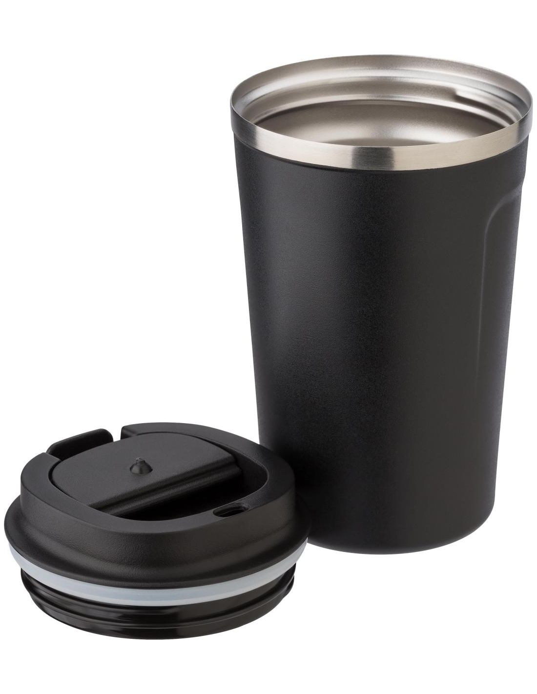 Vaso termo con doble pared de acero inoxidable 304 (380 ml). La tapa tiene una abertura para beber con cierre.