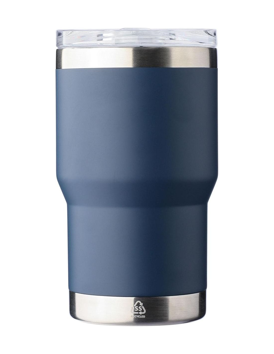 Vaso termo de acero inoxidable reciclado (350 ml). Exterior de acero inoxidable 201, interior de acero inoxidable 304 con revestimiento cerámico. Incluye un logotipo de reciclado grabado en el cuerpo. Presentado en una caja de cartón marrón.