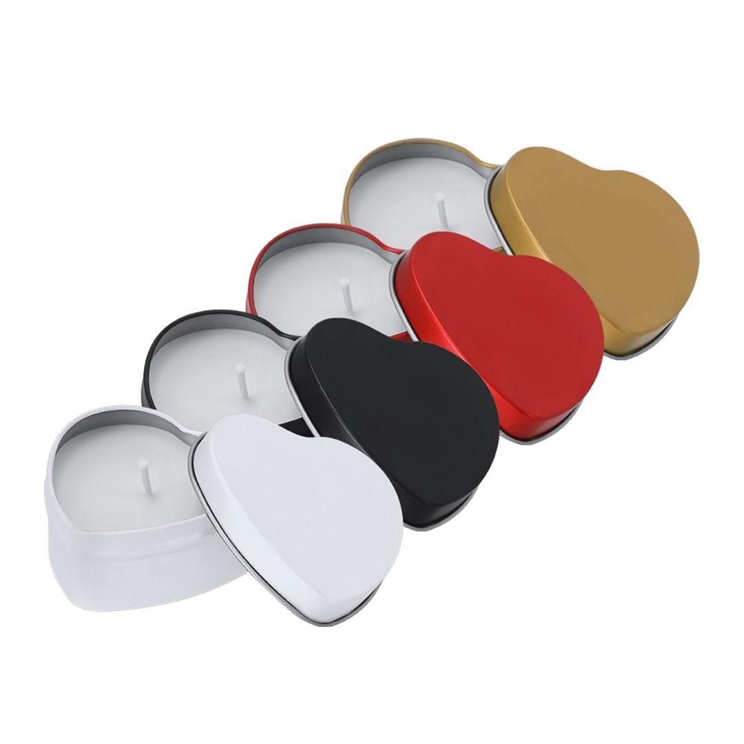 Original vela aromática en cajita de metal con forma de corazón, con aroma a vainilla.