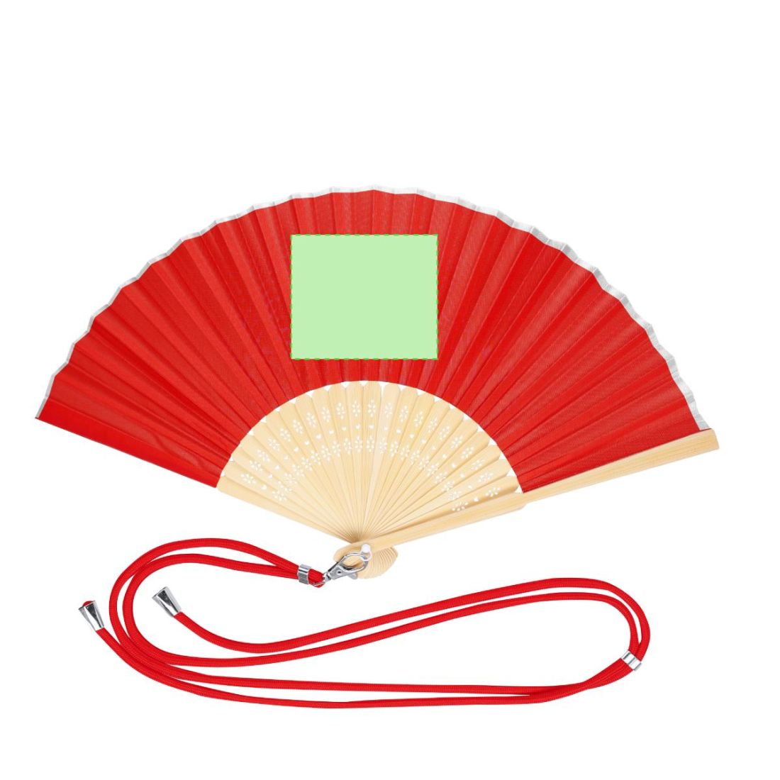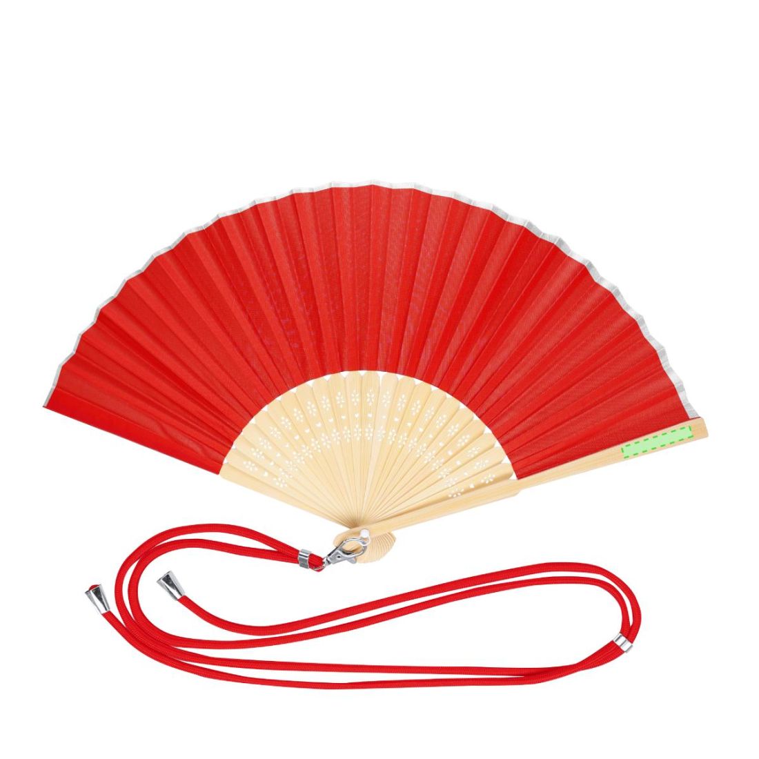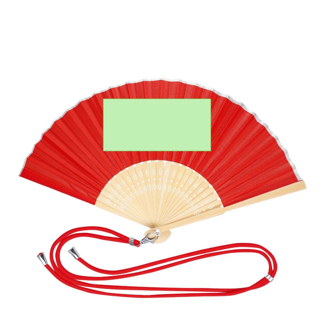 Abanico confeccionado con tela de resistente poliéster 190T y varillas de flexible bambú. Incluye un cordón ajustable a juego con la tela y un práctico mosquetón metálico para fácil transporte.Materiales como el Bambú fomentan la utilización de materias primas naturales reduciendo las emisiones contaminantes. Además, el bambú proviene de una planta de gran resistencia y versatilidad, con crecimiento y regeneración rápida, siendo una excelente alternativa al uso de madera tradicional.