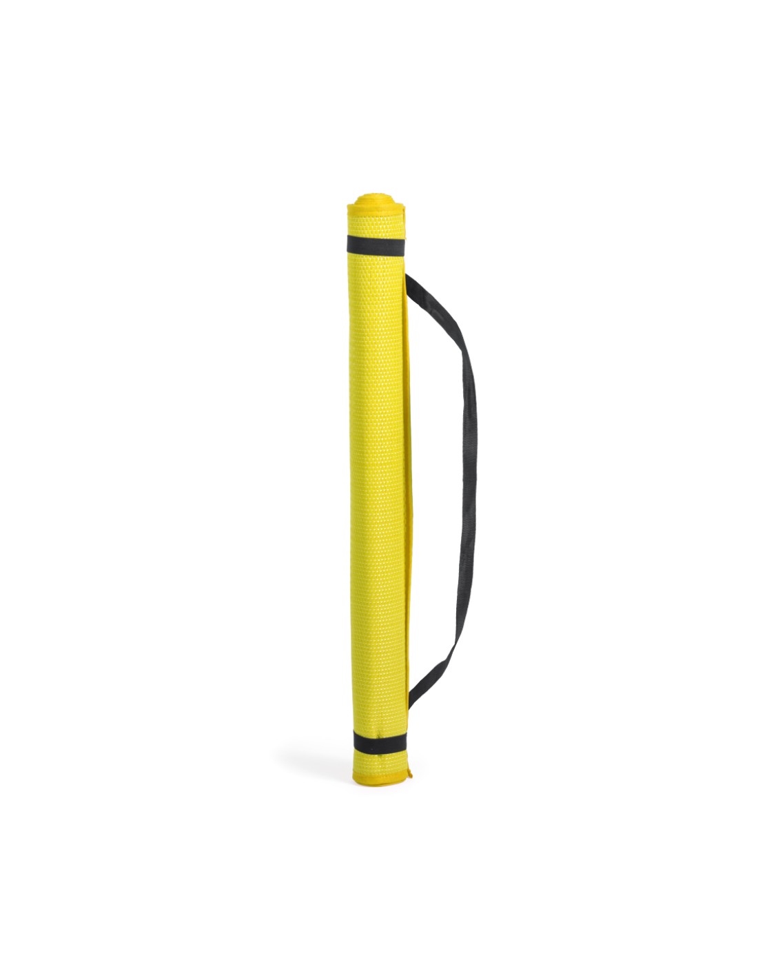 Esterilla plegable tamaño maxi de 180x60cm en PP trenzado de alta resistencia. En variada gama de vivos colores brillantes, con elásticos de cierre y asa de transporte.