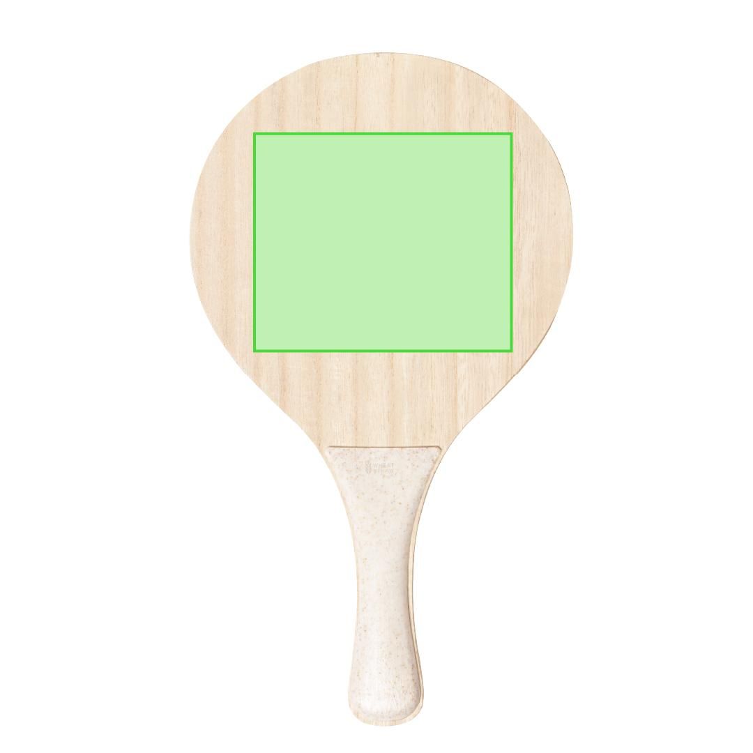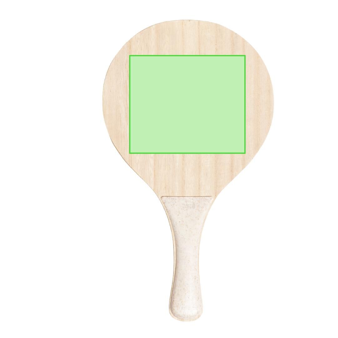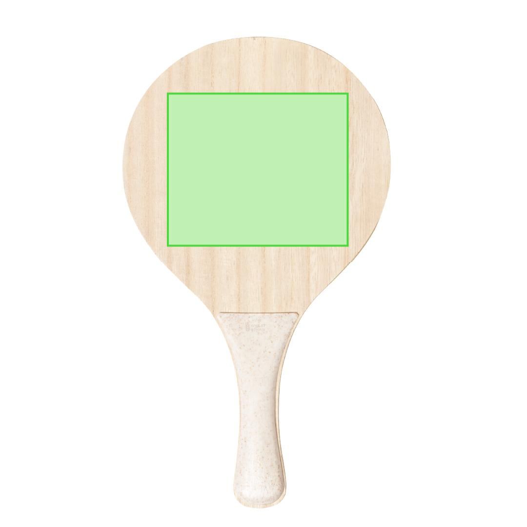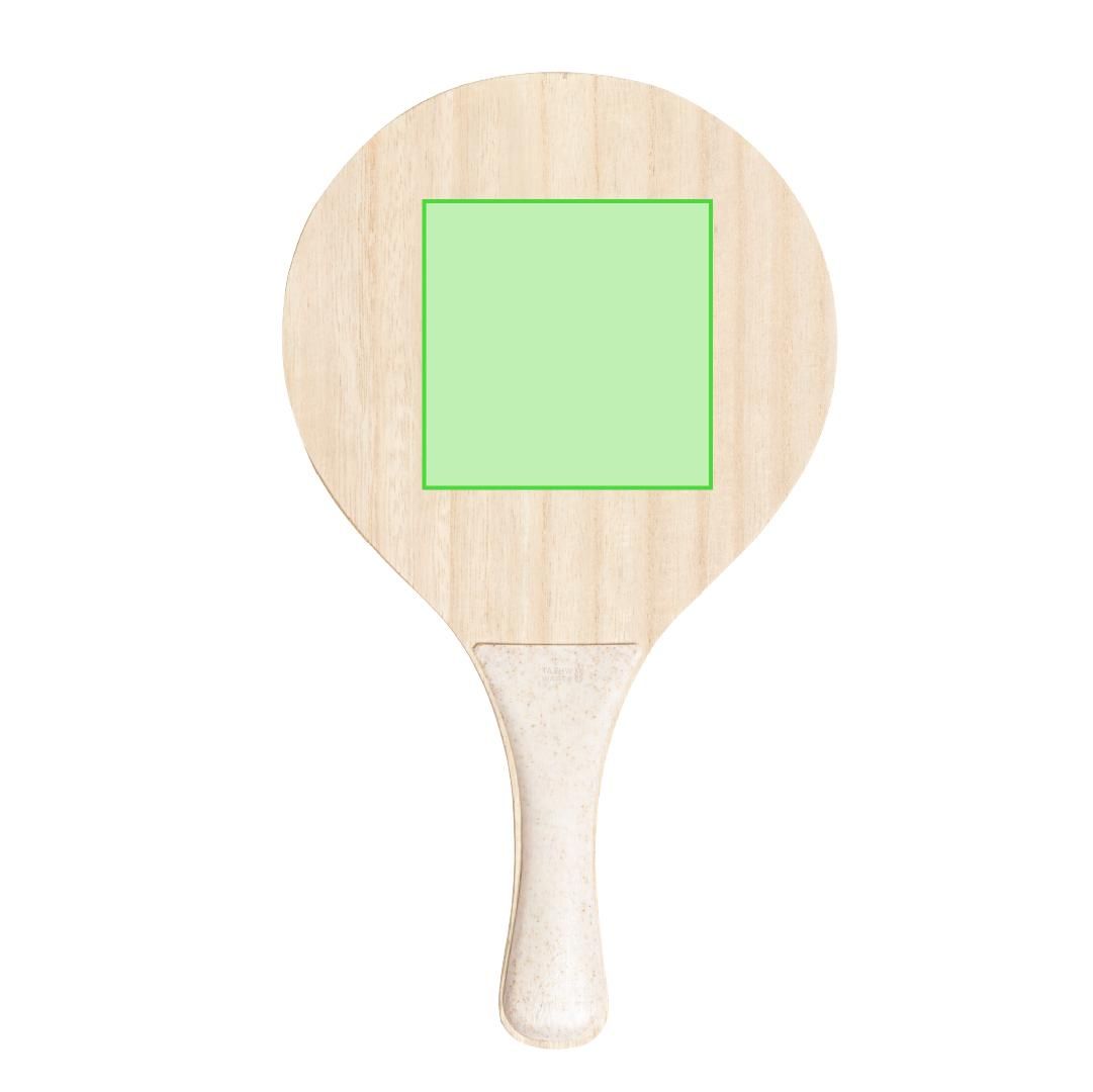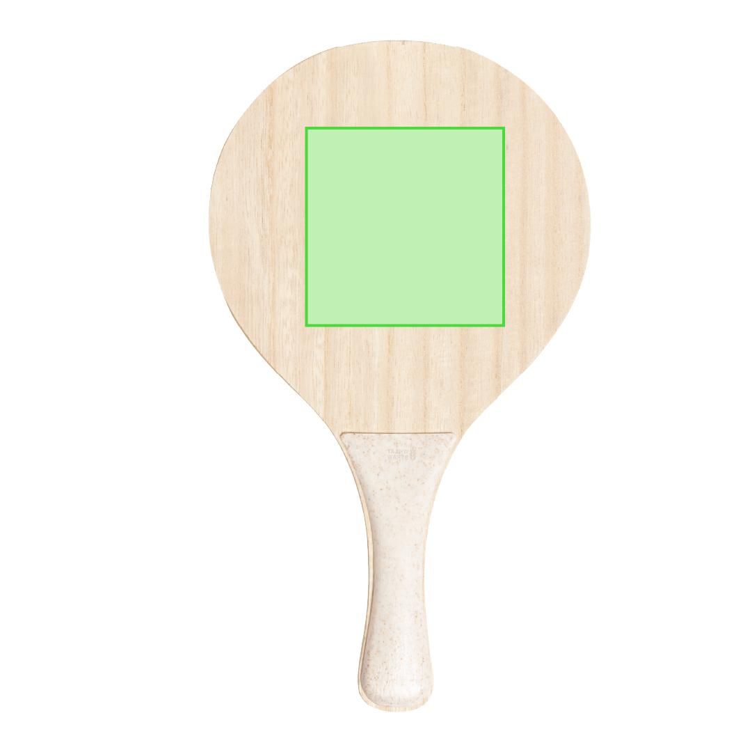 Par de palas de playa de línea nature. Fabricadas en madera, con mango reforzado en caña de trigo. Presentadas en bolsa de rejilla y con pelota de caña de trigo. Distintivo en el mango.