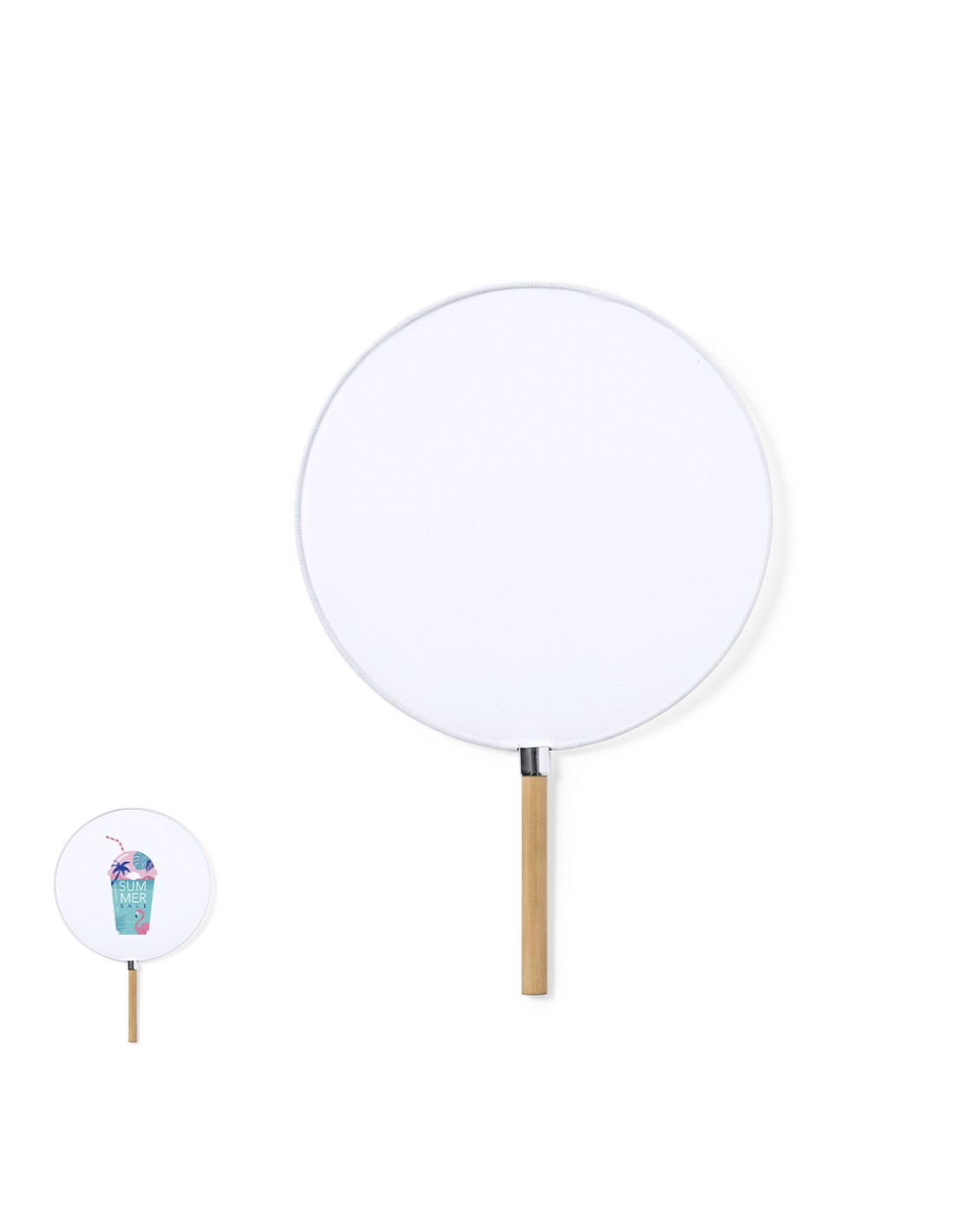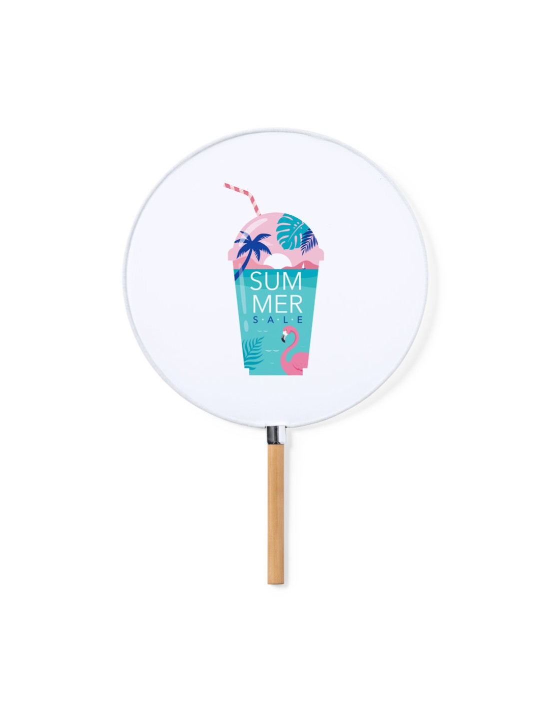 Elegante Pai Pai fabricado en resistente poliéster especial para sublimación. Con mango en bambú y detalle en cromado.