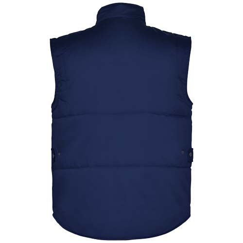 Chaleco de trabajo multiusos cálido con cuello alto. Cremallera frontal con correa y cierre de velcro. Bolsillo exterior para el teléfono en el lado derecho. Dos bolsillos delanteros con fuelle y aberturas laterales. Dos pequeños bolsillos para bolígrafos. Bolsillo interior con cierre de velcro. Bolsillo con cremallera. Parte trasera más larga. Ajustador con cierre automático.