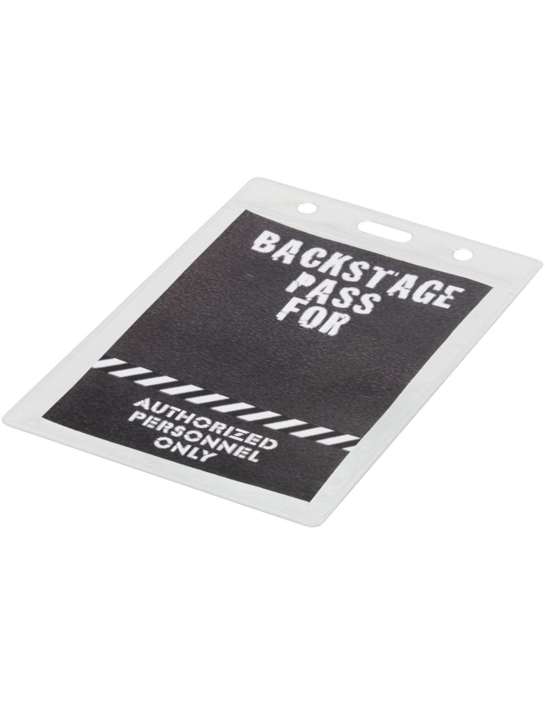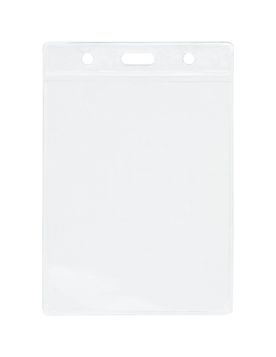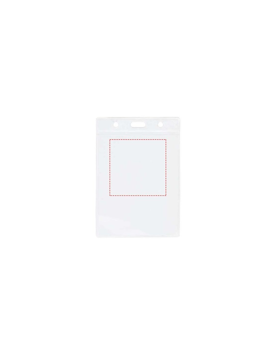Un portatarjetas de inserción en la parte trasera y ojal superior para sujetar a un cordón identificativo o llavero extensible. Este artículo puede llevar una tarjeta de 9,2 x 7,8 cm.